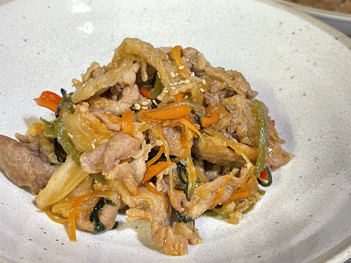 夕飯は #プルコギ 今回は豚肉で🥩 甘辛の味付けがご飯にバッチリ‼️ 子ども達もご飯おかわりして満足😊✨ ハイボールとも合う😆🥃‼️ #料理好きな人と繋がりたい #お酒が好きな人と繋がりたい #おじさん料理 pic.x.com/xmW3NnMtab