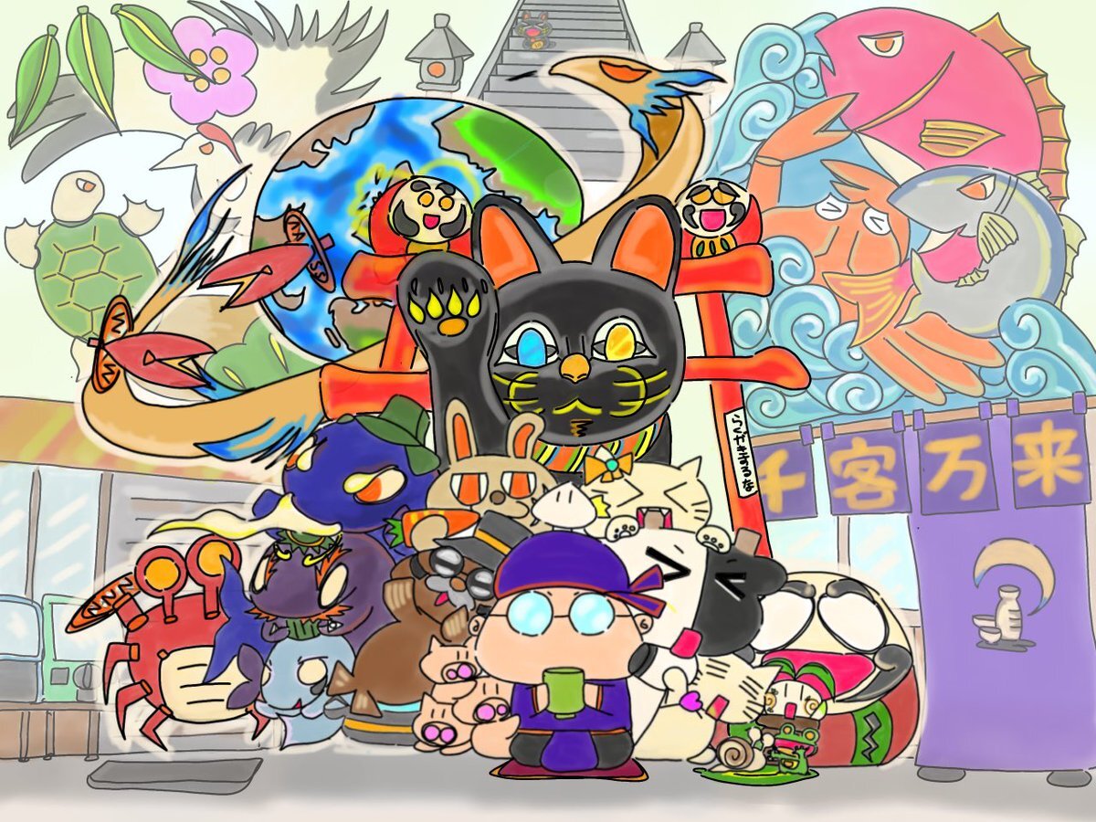 おうち居酒屋叢雲のある暇人横丁。横丁を切り盛りするメンバーたちと、サポート?してくれるメンバーたちです。 #居酒屋 #商店街 #お酒が好きな人と繋がりたい #イラスト好きな人と繋がりたい #イラスト好きな人と繋がりたい #料理好きさんと繋がりたい #ilustracion pic.x.com/fAW2LCiDR4