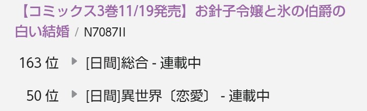 短編がランクインしてるから他の作品も読んでもらえてうれしい☺️ お針子令嬢はなろうでは本編完結してますが、随時SSを更新してますのでよかったら覗いてみてください💕 今夜0時にも記念SSを更新します! #お針子令嬢と氷の伯爵の白い結婚 ncode.syosetu.com/n7087ii/ pic.x.com/tYDn0iealA