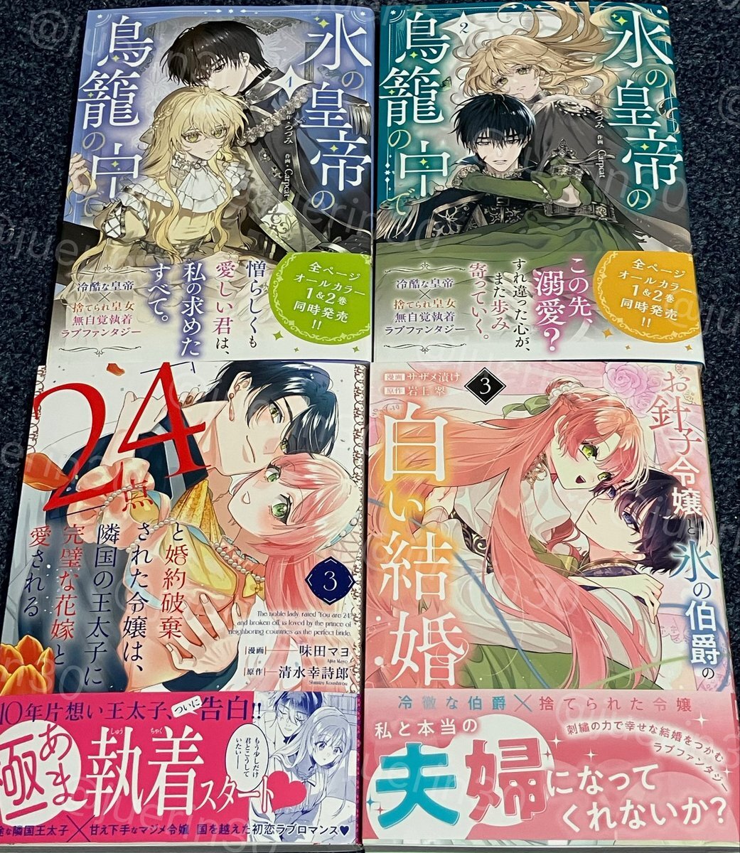 #今日買った漫画 #お針子令嬢と氷の伯爵の白い結婚 3 #「24点」と婚約破棄された令嬢は、隣国の王太子に完璧な花嫁と愛される 3 #氷の皇帝の鳥籠の中で 1と2 pic.x.com/yGkH2Q4e5y
