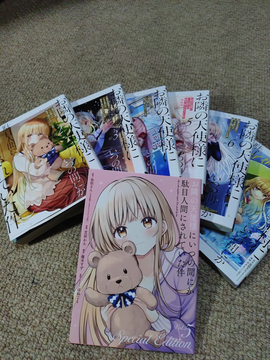 おはようございます😊 今日はアイマスではなく…最近天使様にハマってコミックわを買ってきた!(1巻間違えたけど)アニメも1期見たけど2期楽しみだな〜 ワイも真昼ちゃんに駄目にされてしまった😊あま〜い話だけどこんなん読んでたら来週の健診引っかかるかな🤣 #お隣の天使様 pic.x.com/PlJEWP6U9o