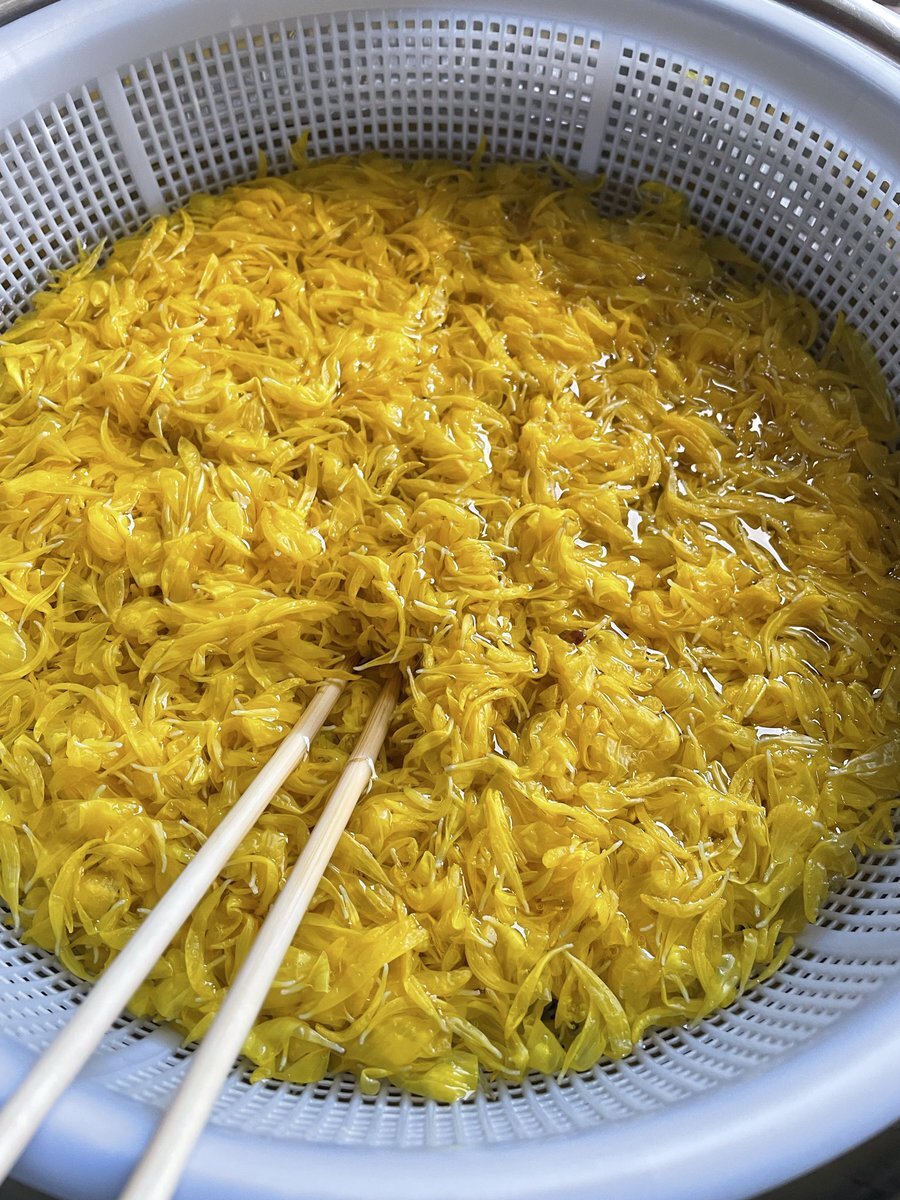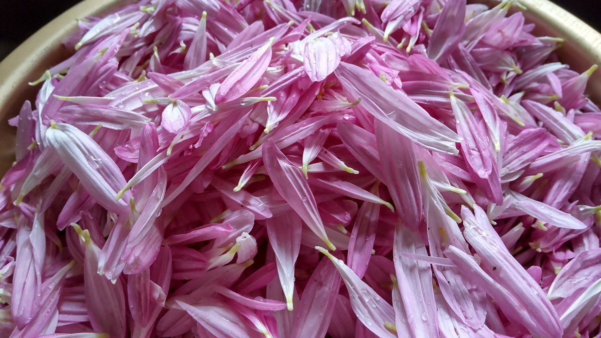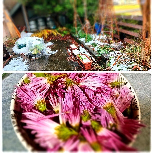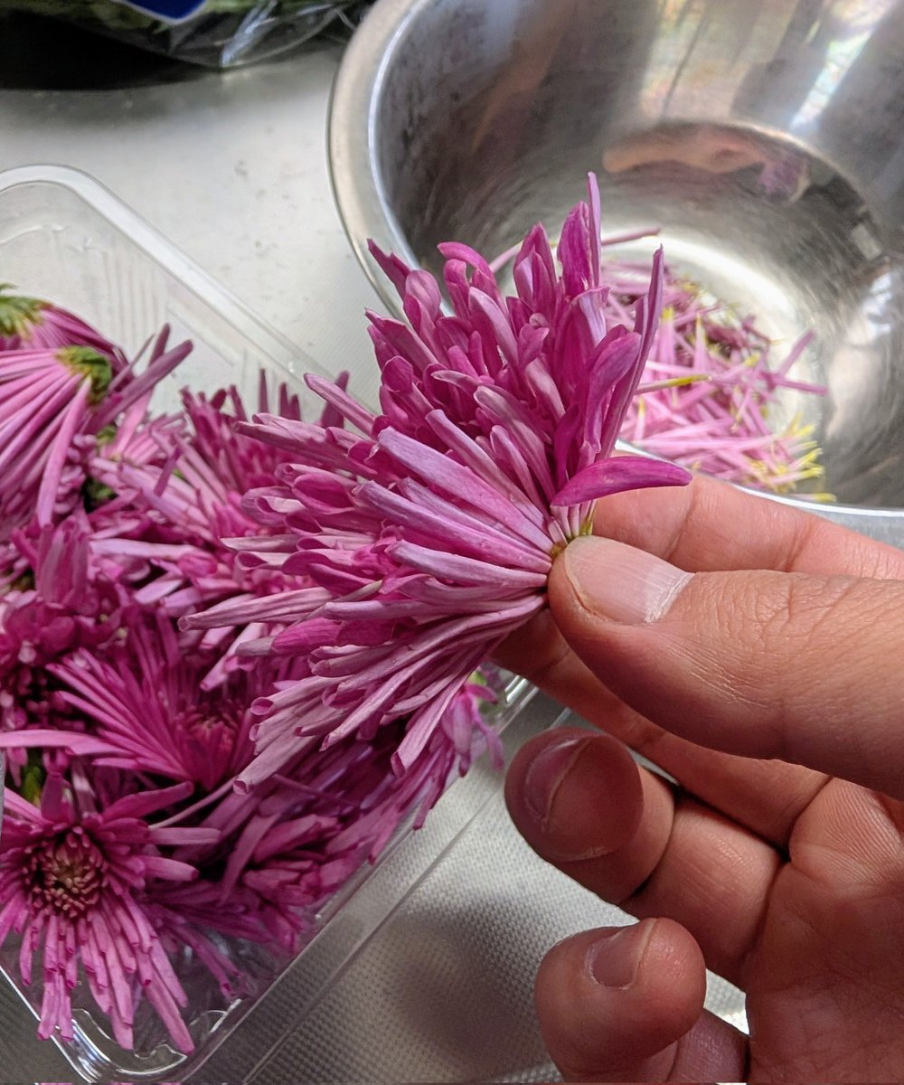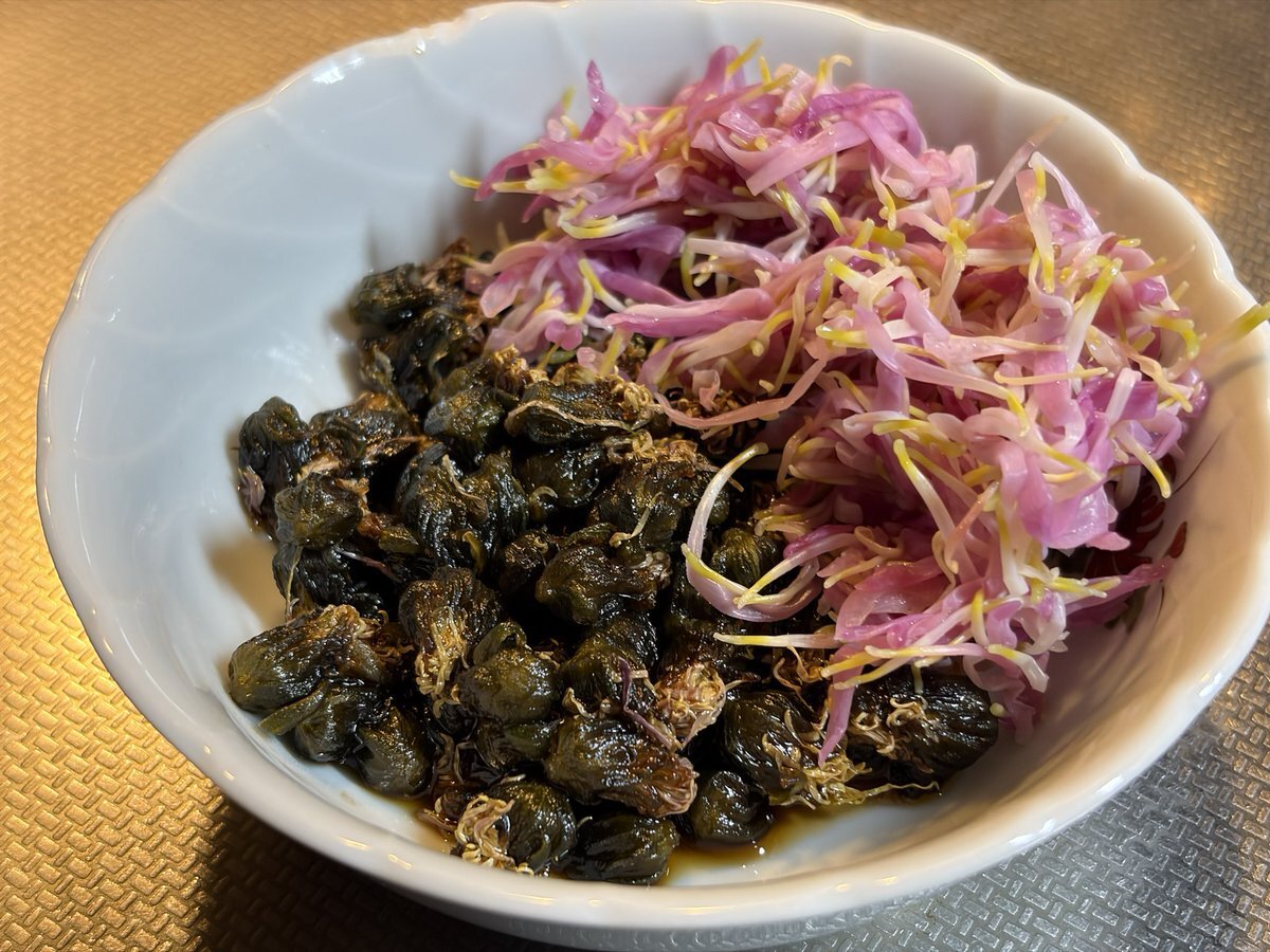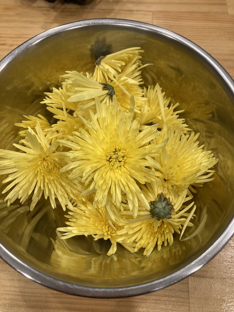 食用の菊の花☺️紫色もありますね🟣小さい頃は彩りを添えるもので食べないと思ってましたが酢の物として頂けます😃苦味とほんのり甘さがありシャキシャキ食感🤙菊は中国から流入し観賞用→霊薬→食用の道を辿ったようで新潟では江戸時代からの食用の記録があるそう😊 #かきのもと #おうちごはん #延命楽 pic.x.com/zE0hcYf69s