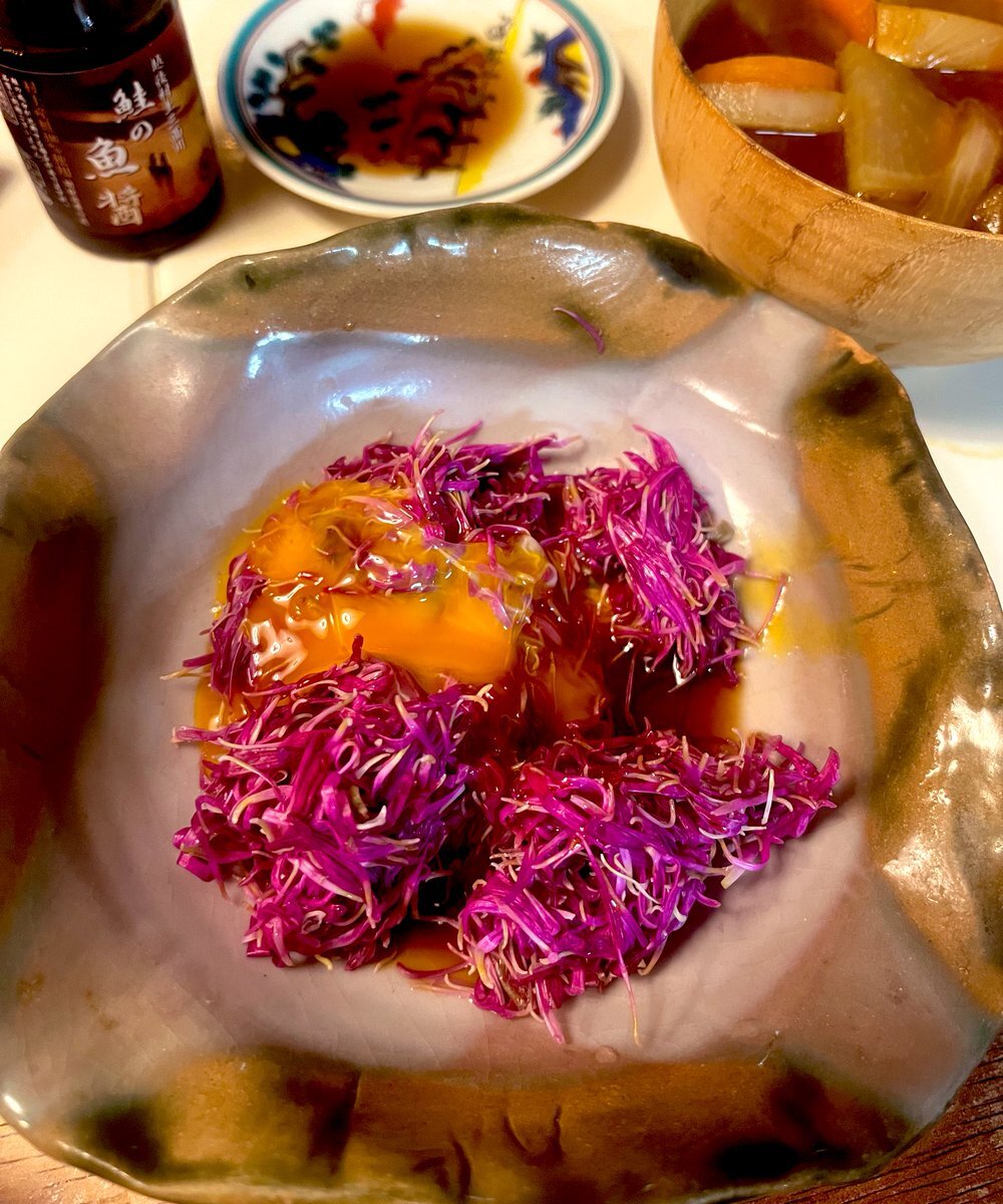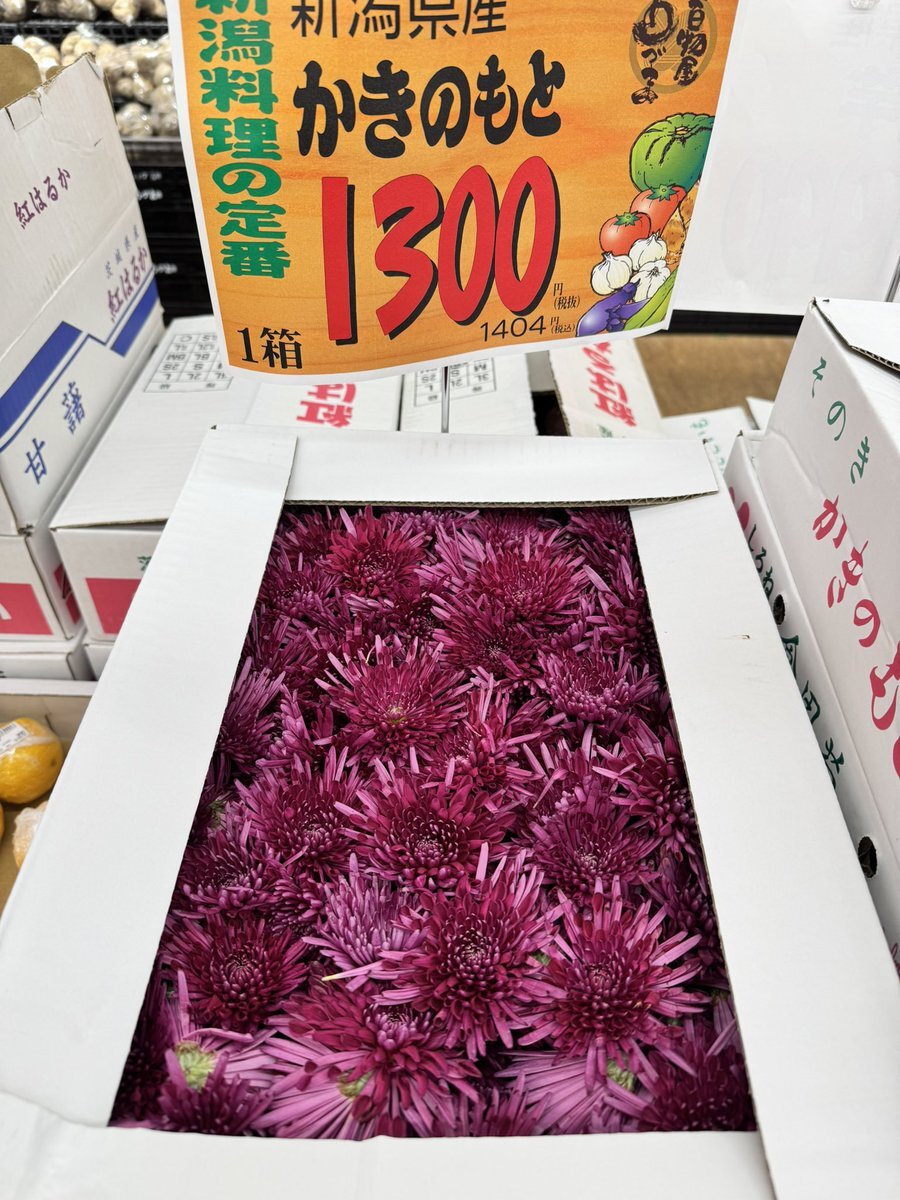 菊を食べるのは新潟と山形だけらしい🤔 今年初「かきのもと」 鮮やかな赤紫色 スーパーに並ぶと秋だなぁって😆 シャキシャキがうまうまです😋 #かきのもと #食用菊 pic.x.com/1nvMBIdLki