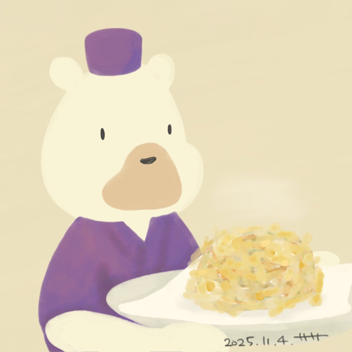 #かき揚げの日 なので、シロクマくんとかき揚げを描きました!! シロクマくんのかき揚げは季節のお野菜盛り沢山のようです✨ サクサク、熱々のかき揚げ想像しただけでおいしそうです😋 #イラスト #一日一絵 pic.x.com/kdd27PXI96