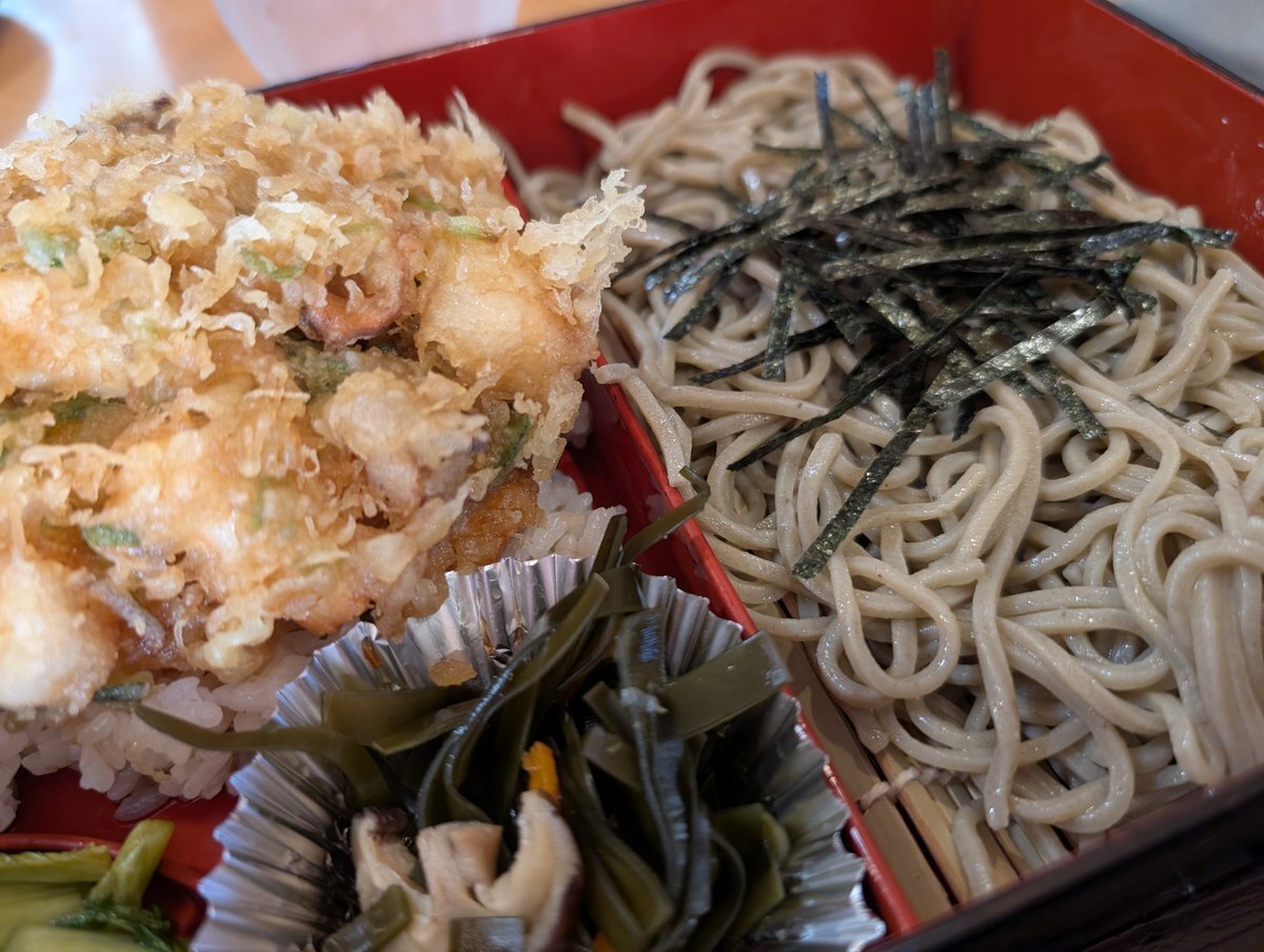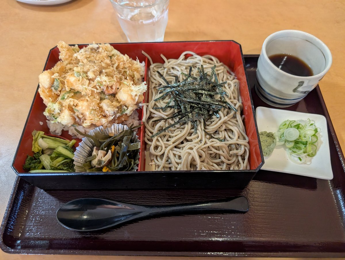 超人気店でランチ(#^.^#) 開店時間(11時)ちょい過ぎだったので、まだ二組目。 かき揚げ丼とざる蕎麦のセット。 蕎麦二玉まで値段同じなので、二玉オーダー(#^.^#) これでで1300円!!! 丁寧、美味しい、安い!!!の三拍子!!! #かき揚げ丼 #ざる蕎麦 #海老天ざる pic.x.com/ehfFn21OzM