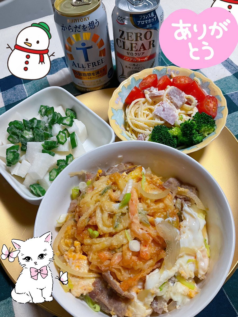 返信先:@miho87761665美穂子殿の 真心たっぷりの 美味しい #かき揚げ丼 #スパゲティサラダ #コロコロ長芋 に感謝して カンパーイ🍻😻🤯😀! ↓㊧佐助の母の菊ちゃん ㊨佐助です😸 pic.x.com/pHVGq0T8MR