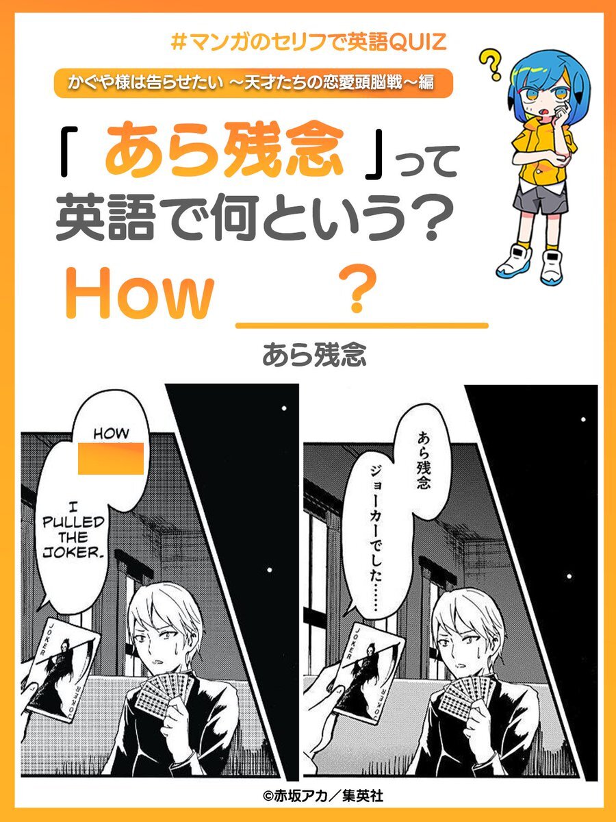 #マンガのセリフで英語QUIZ 「あら残念」 英語で何という? 👇リプから正解を選んでください👇 #かぐや様は告らせたい #Langaku #英語学習 #多読 pic.x.com/OJKBaozUw0