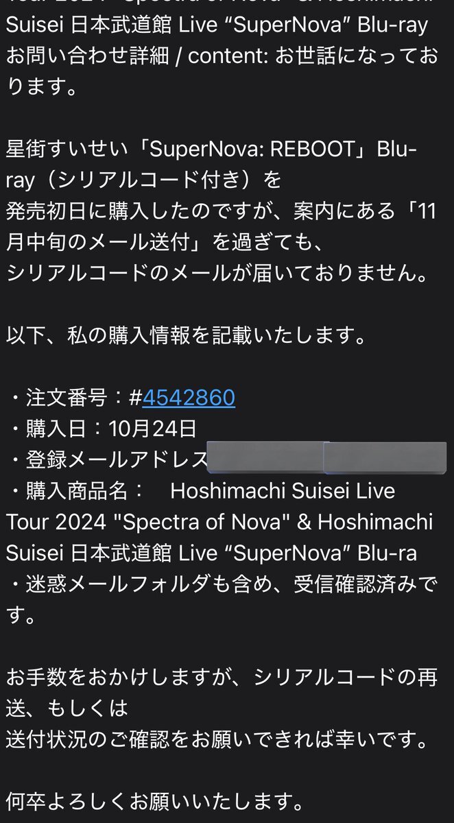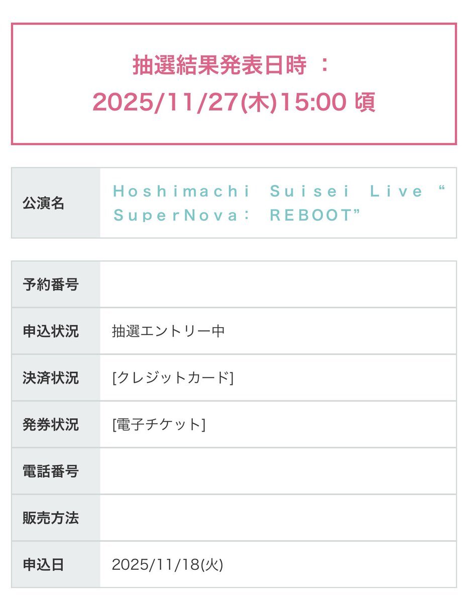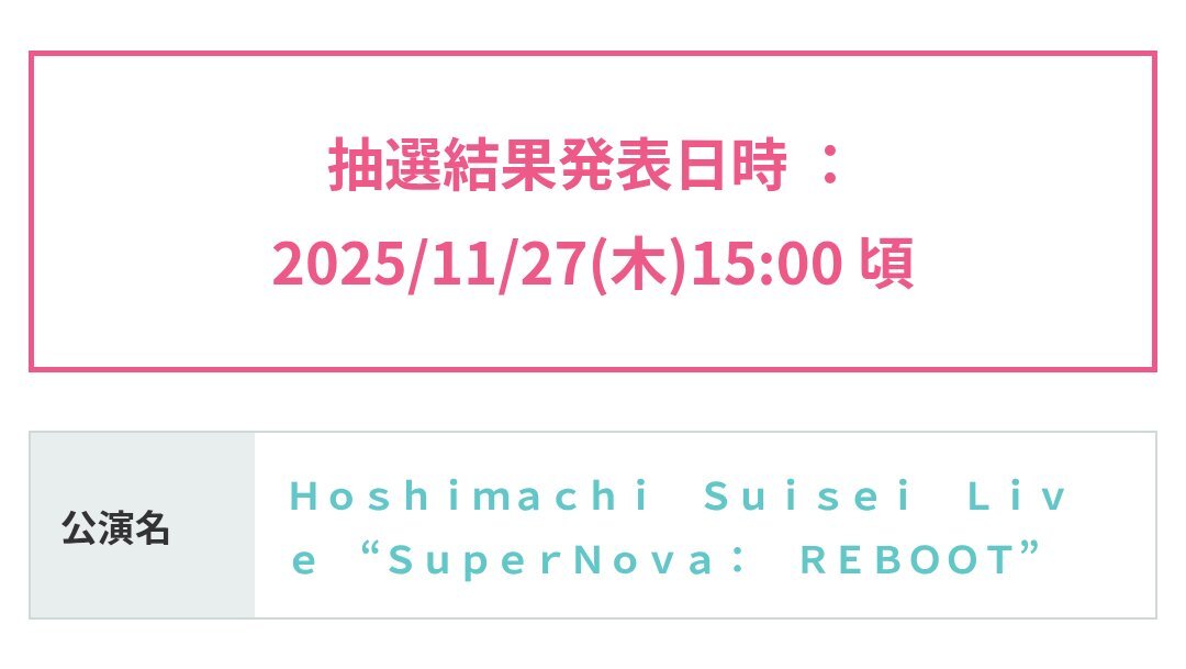 現在必死に来年の星街すいせいさんのLIVE一次先行シリアルコード募集しております 星街すいせい Hoshimachi Suisei Live “SuperNova: REBOOT” 1次先行シリアルコード 3000円以上(要交渉) DMにてご連絡お待ちしております #かけめぐるほしまち再 #星街すいせい #ホロライブ