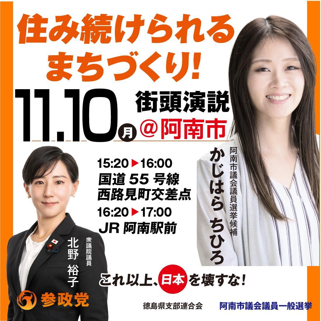 京都から応援しております🤗🎤🧡 #紀の川市議会議員候補 #上田あやこ #糸満市議会議員候補 #とくむらあかね #鳥栖市議会議員候補 #重松ただし #阿南市議会議員候補 #かじはらちひろ に、大切なご1票を託してちょうダイナ🧡🗳️🧡