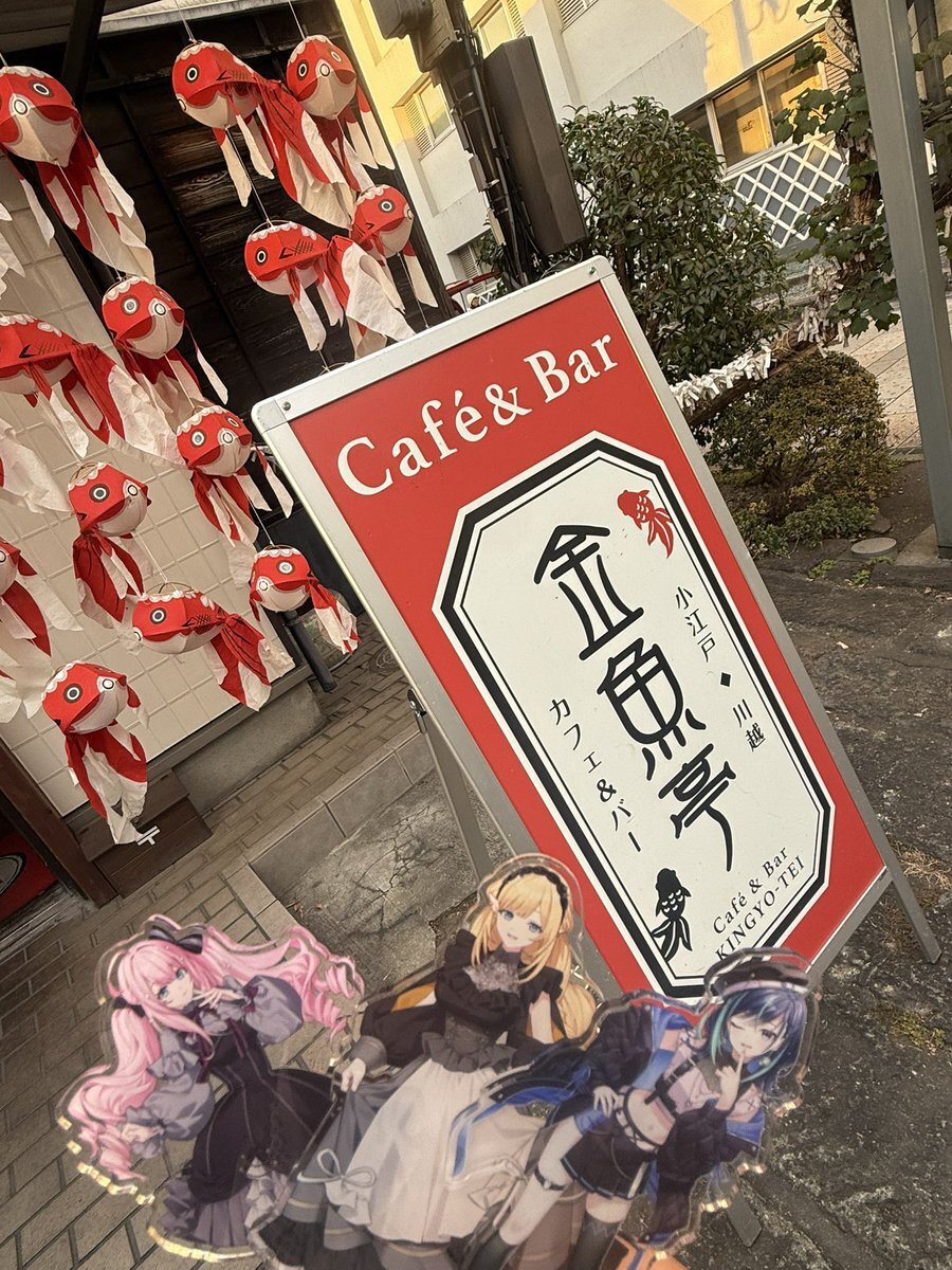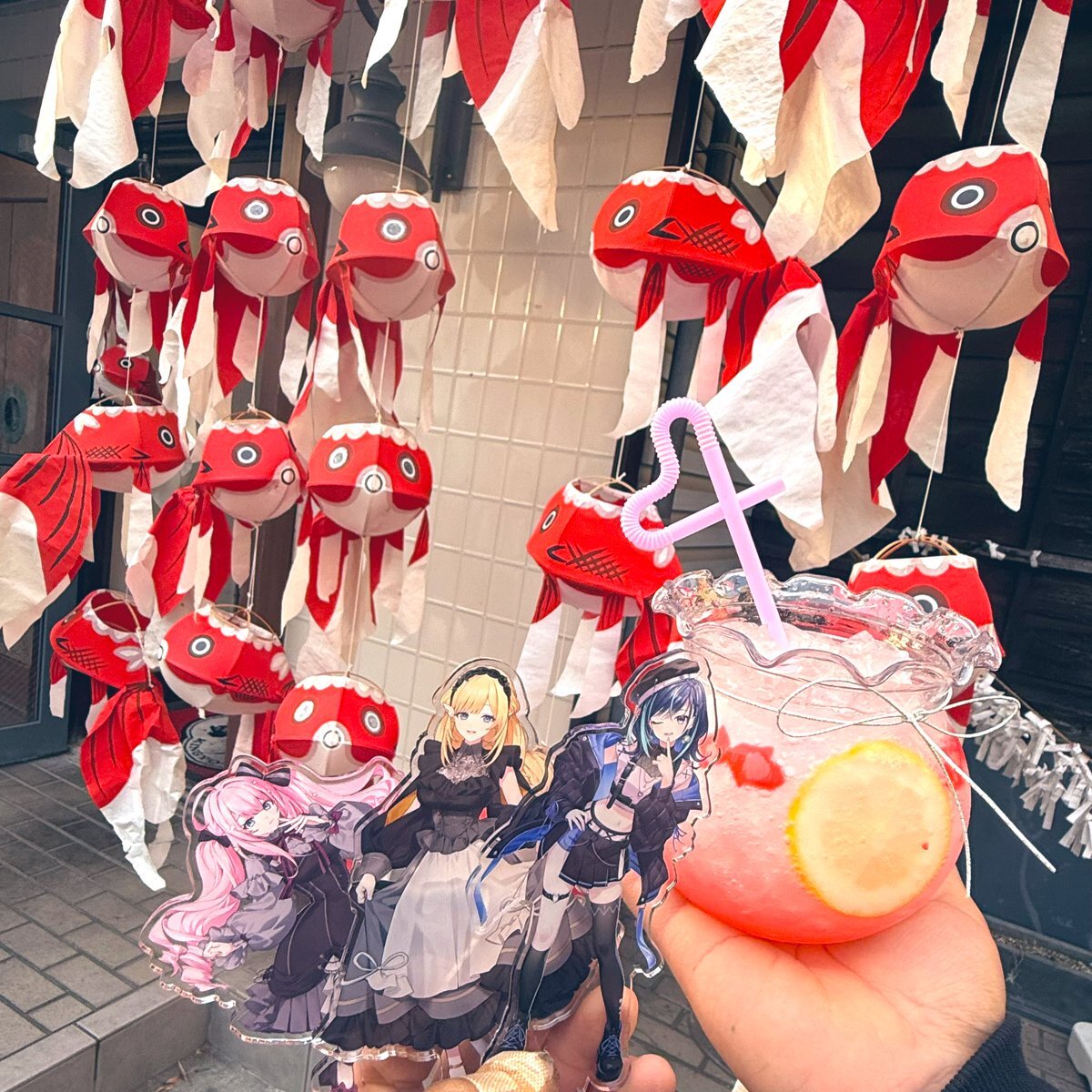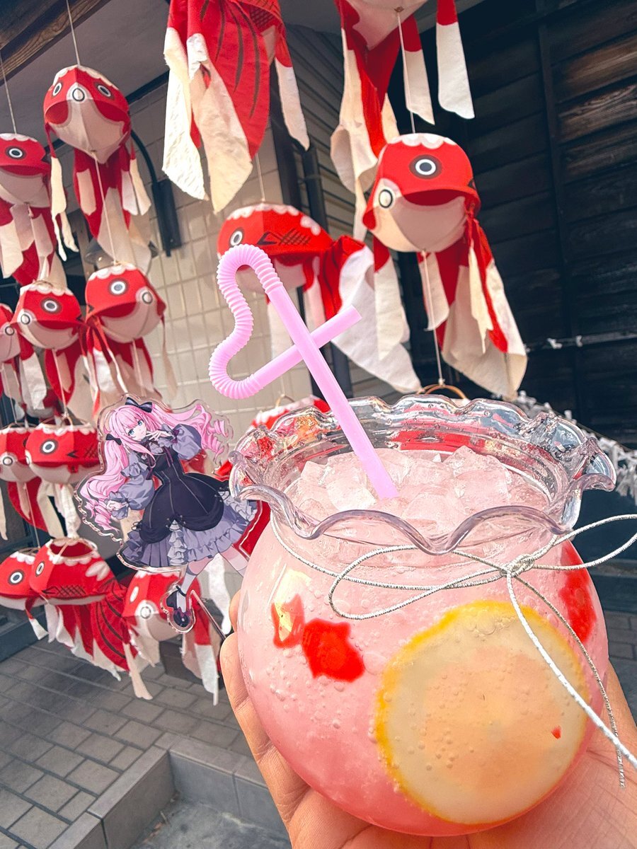 鎖那と川越に遊びにきた^ ^ 金魚鉢ソーダ美味しい😋 もちろんピーチソーダで!!✨ アクスタ3つとジュース片手は無理だったから鎖那に撮ってもらった😂 #おさんぽミルちゃん #ノアちゃんといっしょ #かのんといっしょ pic.x.com/28tEvb9Ie7
