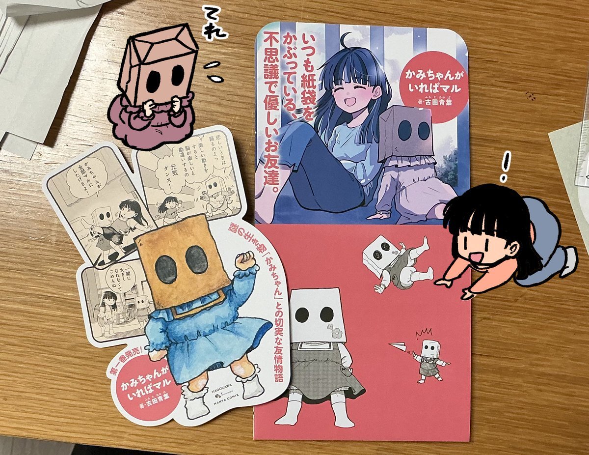 みて 本を開いてまんがが始まる前にタイトル・目次のページが挟んであるのですが、ここはかみちゃんの紙袋をイメージしていただきました。紙の本のよいところ かみちゃんの手触りを感じてみてね⚫︎⚫︎ #かみちゃんがいればマル pic.x.com/cmn4LP8xQZ