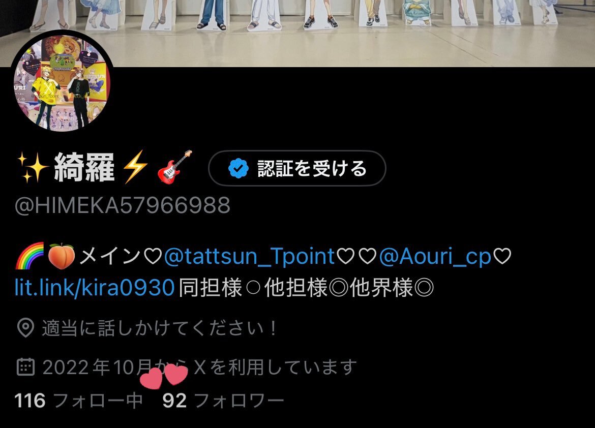 同年代さん、ペア推し同担さん優先してお迎えします(՞ . .՞)✨ 気になり様のみメンションでゆっくりお迎えします🎶 リトリン一読お願いします🙇🏻‍♀️" lit.link/nqkkln #からぴち好きと繋がりたい #ぴちりすさんと繋がりたい #ぴちりすと繋がりたい
