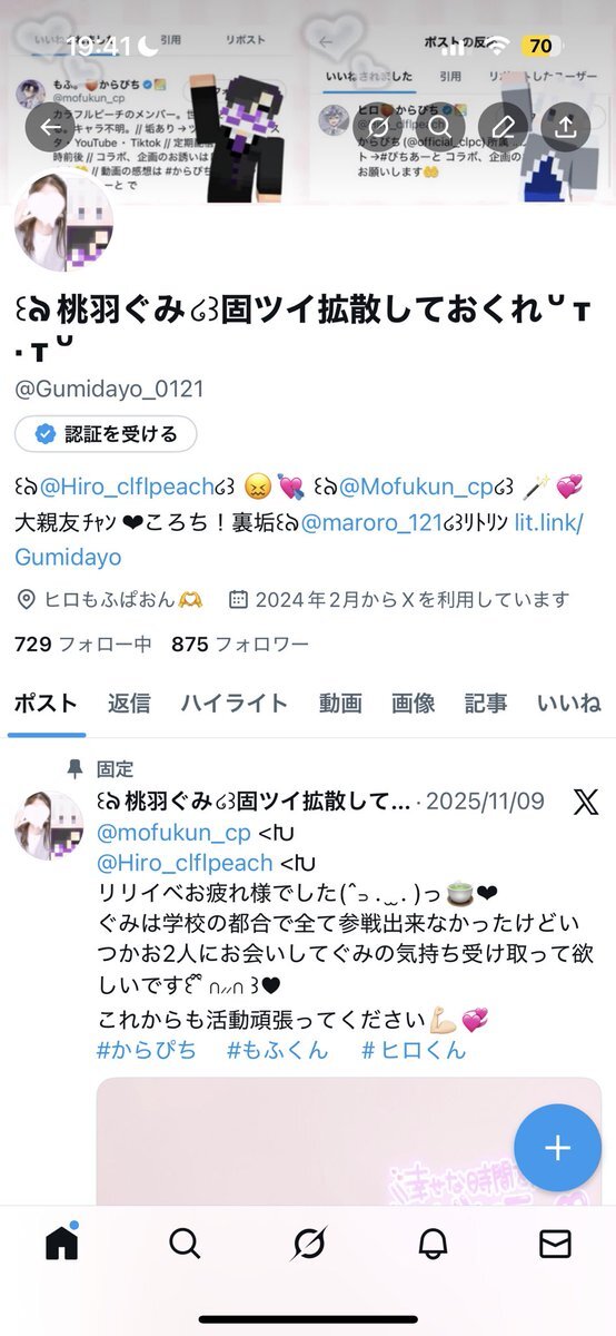 ꒰ঌ桃羽ぐみ໒꒱固ツイ拡散しておくれᐡ т · т ᐡ@Gumidayo_0121