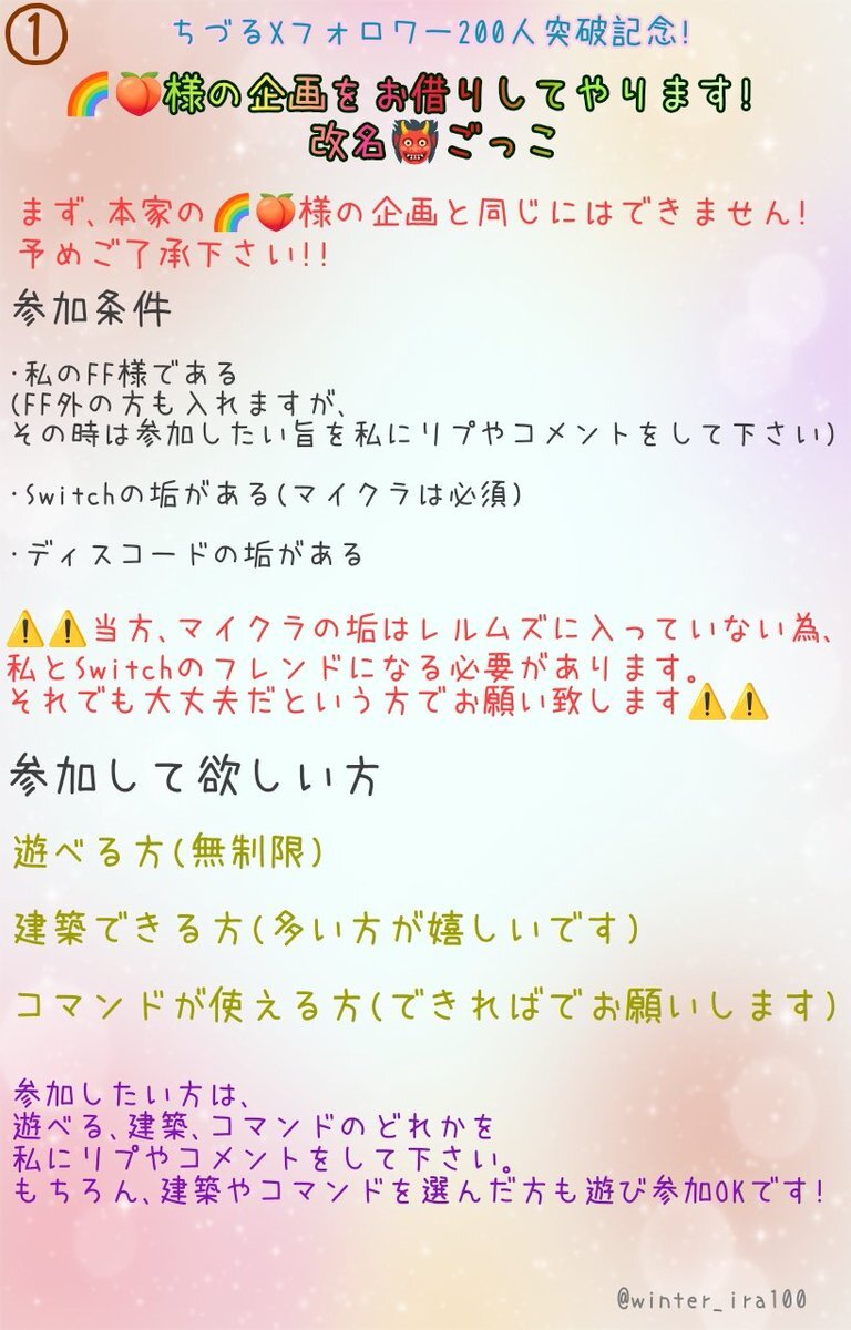 こちら、200人記念の企画となります! できればたくさんの方に参加して頂きたいです! FF外の方はコメントをしてからの私へのフォローをお願い致します。 ルール的に悪ければ消します。 ぜひ宜しくお願い致します✨