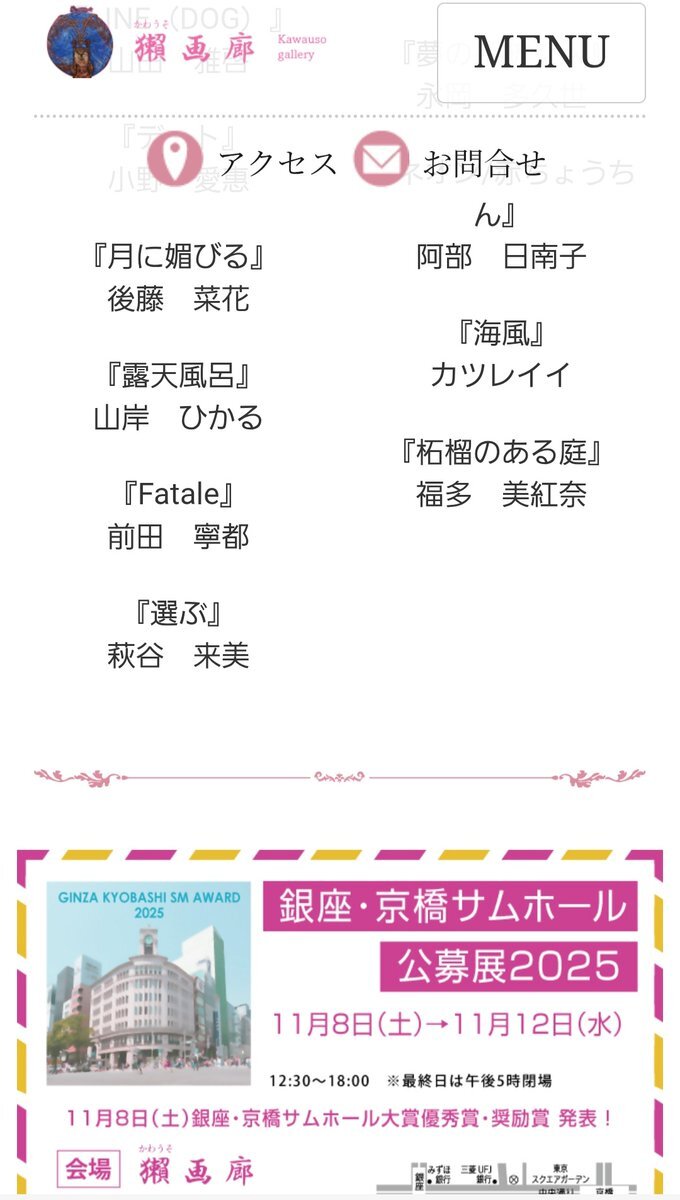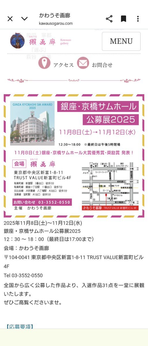 #中井ヒトミ さま @naka187   中央区新富   かわうそ画廊 さま   「銀座・京橋サムホール公募展2025」  おうかがいしました。  #かわうそ画廊 @artkawauso   #お知らせかわうそ @KawausoGallery   #新富町 #八丁堀   #銀座 #京橋 #宝町   #サムホール #公募展 pic.x.com/cp8jqqUoaL x.com/naka187/status…