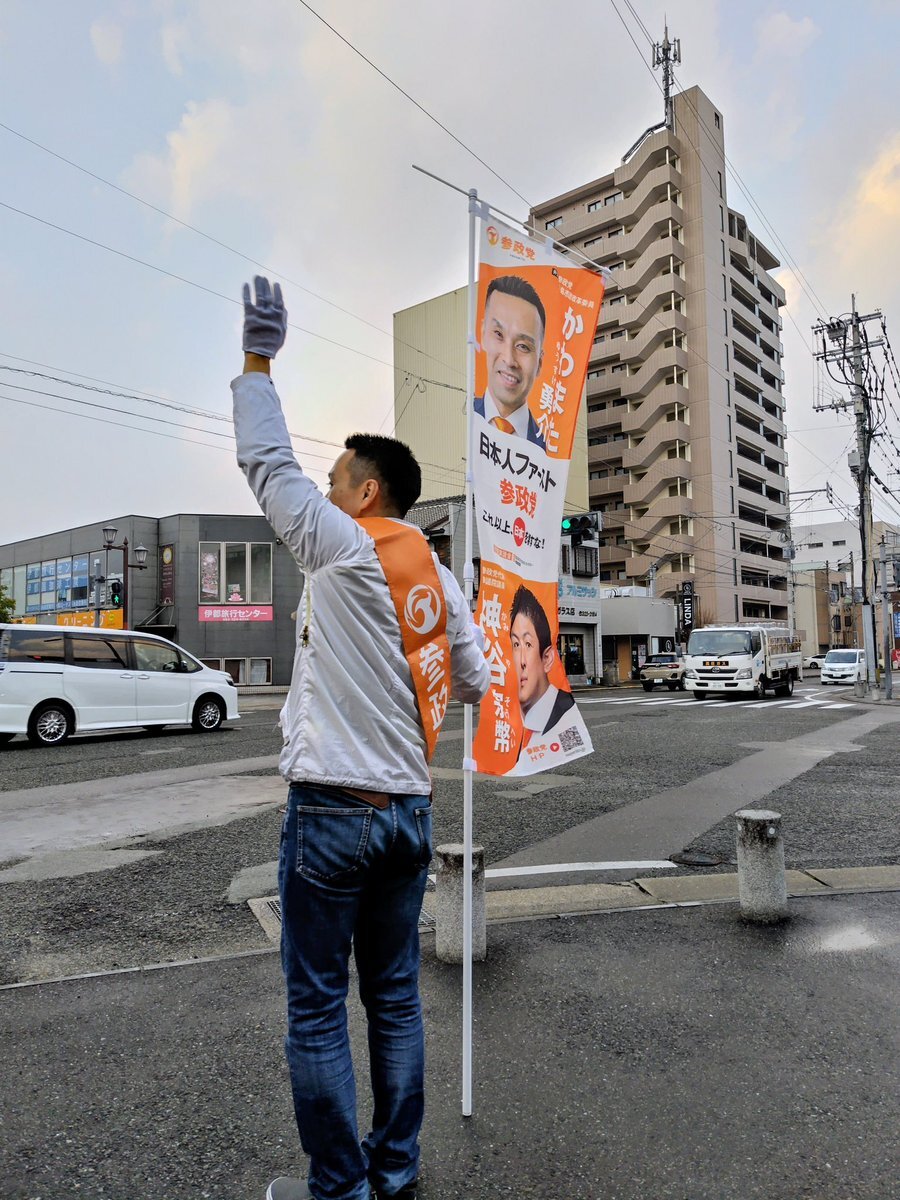 日曜朝は、大きめの交差点で辻立ちです。 今日もかなりの方に手を振り返していただきました。 認知と支持が高まっているのを感じます。 昨日の辻立ちでは、これまで挨拶に無反応だった方が、ついに軽い会釈で返してくれました。 行動し続ければ何かが変わるんだと、実感させていただきました。