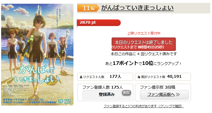 ドリパスの『がんばっていきまっしょい』 現在の順位、再びは9位に浮上しました! #がんばっていきまっしょい 投票はこちら↓ dreampass.jp/m394325 pic.x.com/jI9hY2imK6