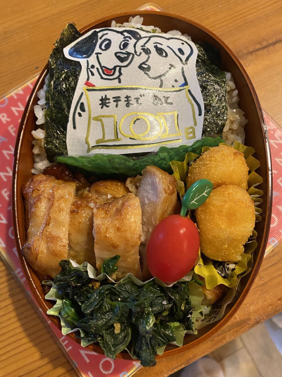 共テまであと101日🐾 100日前は弁当がない日と気づき、1日前倒しで応援弁当🐶🚩 #がんばれ受験生 #男子高校生弁当 #共テまであと101日弁当 pic.x.com/kEb2PkoSm3