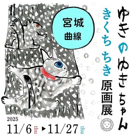 本日より、仙台の曲線さん @kyokusen_8 に『ゆきのゆきちゃん』原画展が巡回しています!新作のハンカチもご覧いただけますので、秋の風景とともに冬への楽しみをどうぞご覧ください❄ハンカチはちきさんの描き下ろしで発表されたことのある絵柄です。 #ゆきのゆきちゃん #絵本原画展 #きくちちき pic.x.com/g0J5jWq9Ws