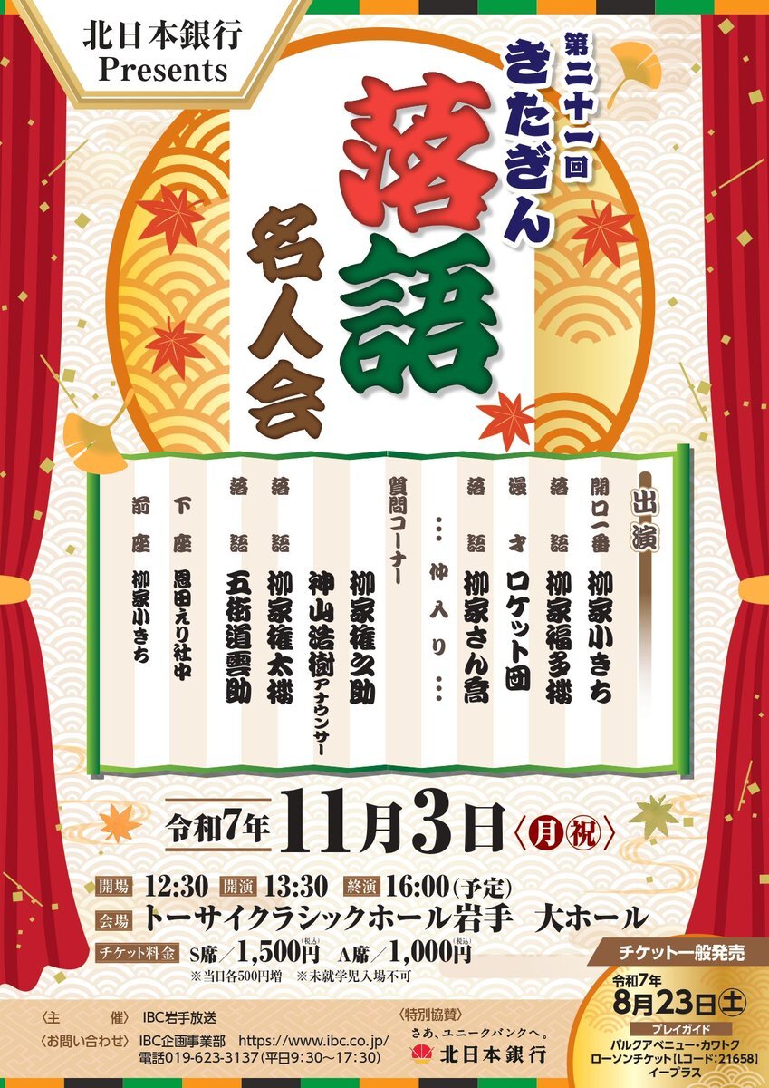 会長、国宝、権太楼 会長、国宝、権太楼 会長、国宝、権太楼 (敬称略) 第21回きたぎん落語名人会 ロイヤルストレートフラッシュな顔付けとなっております。 盛岡近郊の皆さん ご来場お待ちしております。 #きたぎん落語名人会 pic.x.com/EVkjZMIeKz