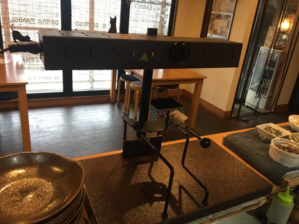 雨なんでお外には出せないけど、これを使う日が来ましたね〜☺️ ラクレットチーズ🧀 #隠れ家酒場ファミリア #きたまち食堂ファミリア #ラクレットチーズ #自家製ノンアルコールサングリア pic.x.com/SXTOsHYxJx