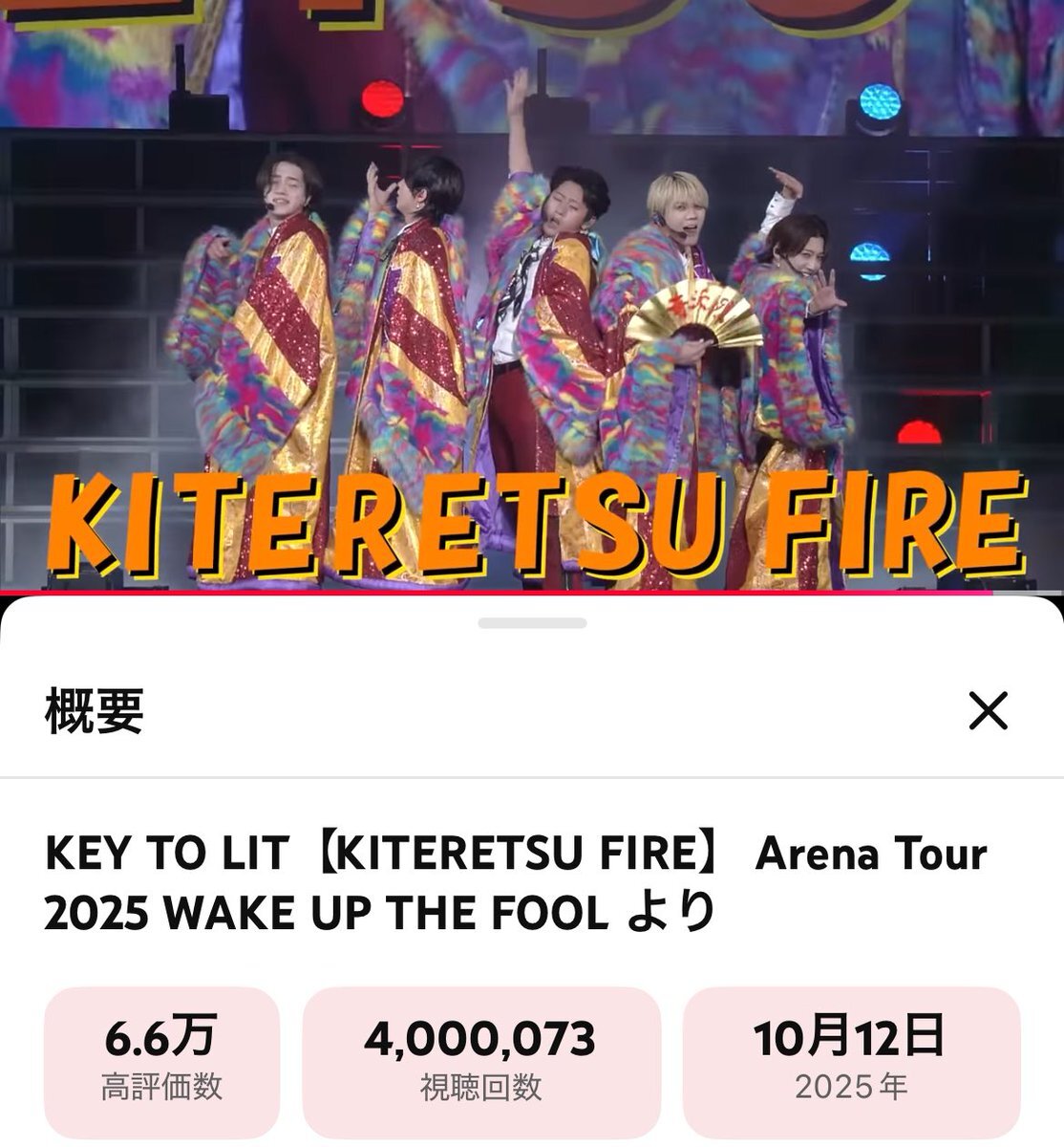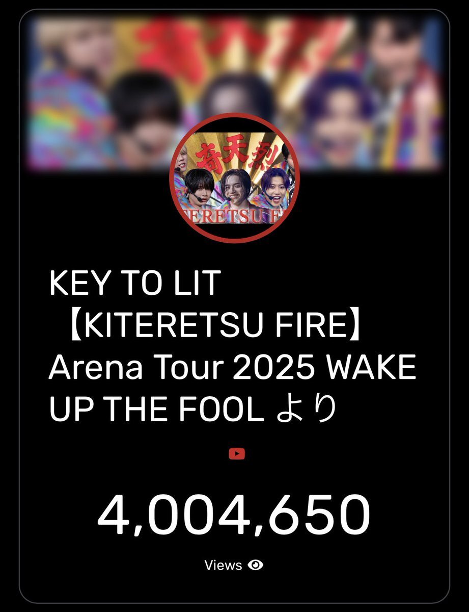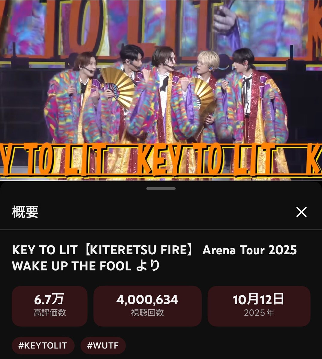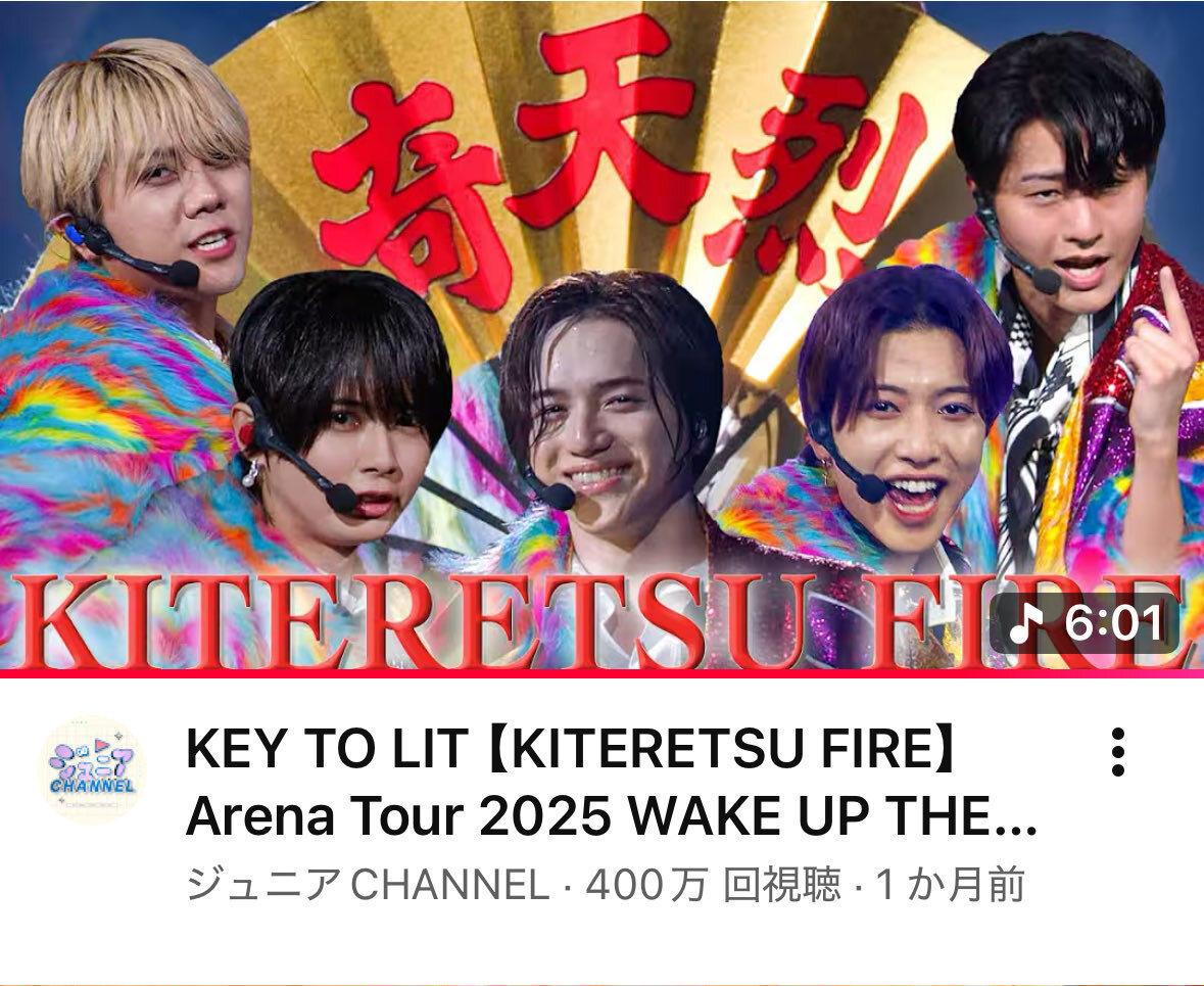 400万回再生おめでとう! #KEYTOLIT #きてれちゅーぶ KEY TO LIT【KITERETSU FIRE】 Arena Tour 2025 WAKE UP THE FOOL より youtu.be/H8BEhVmxc4U?si… @YouTubeより