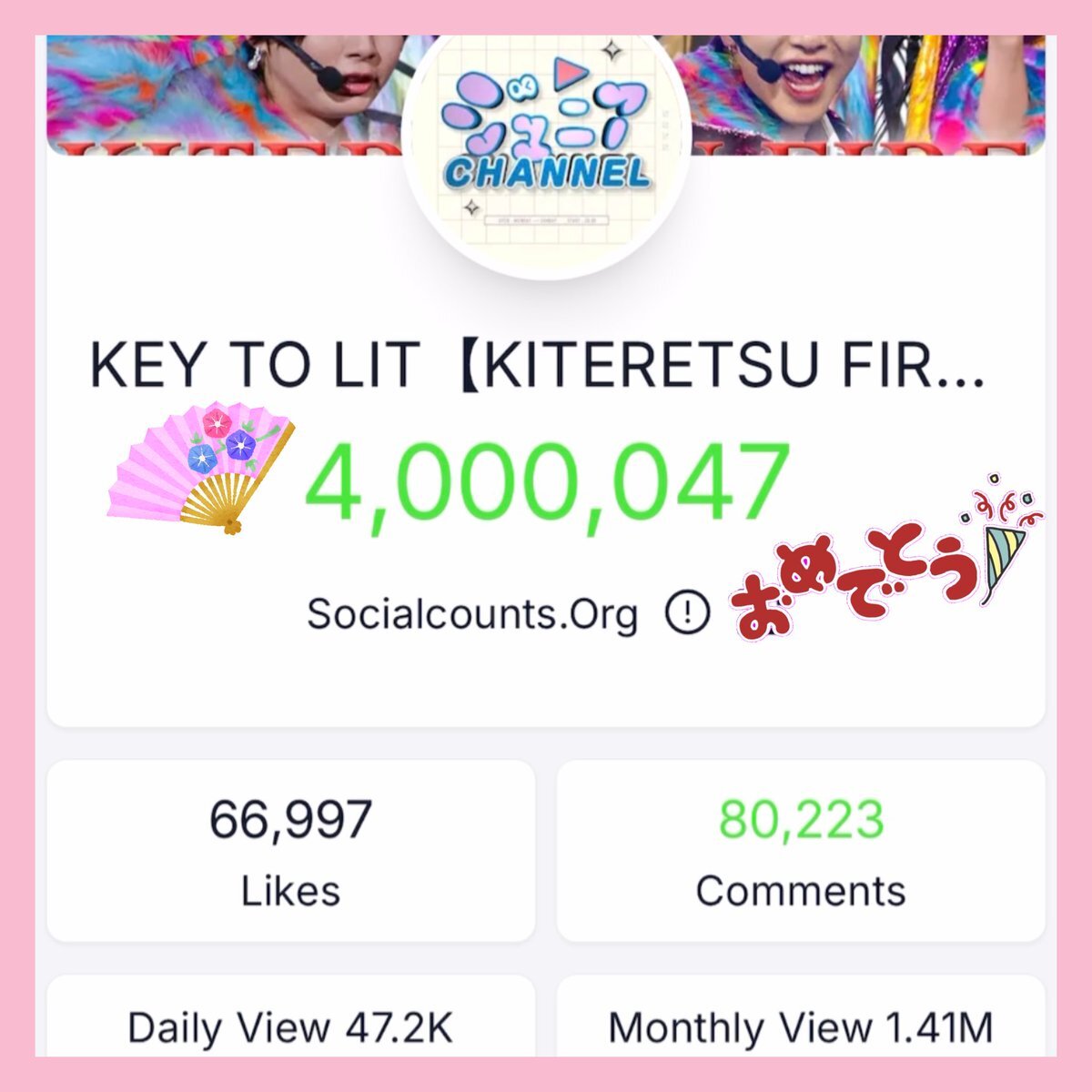 ㊗️400万🌸🌸🌸 #KEYTOLIT #きてれちゅーぶ #KITERETSUFIRE キテレツ キテレツファイヤー x.com/junior_ch_x/st…