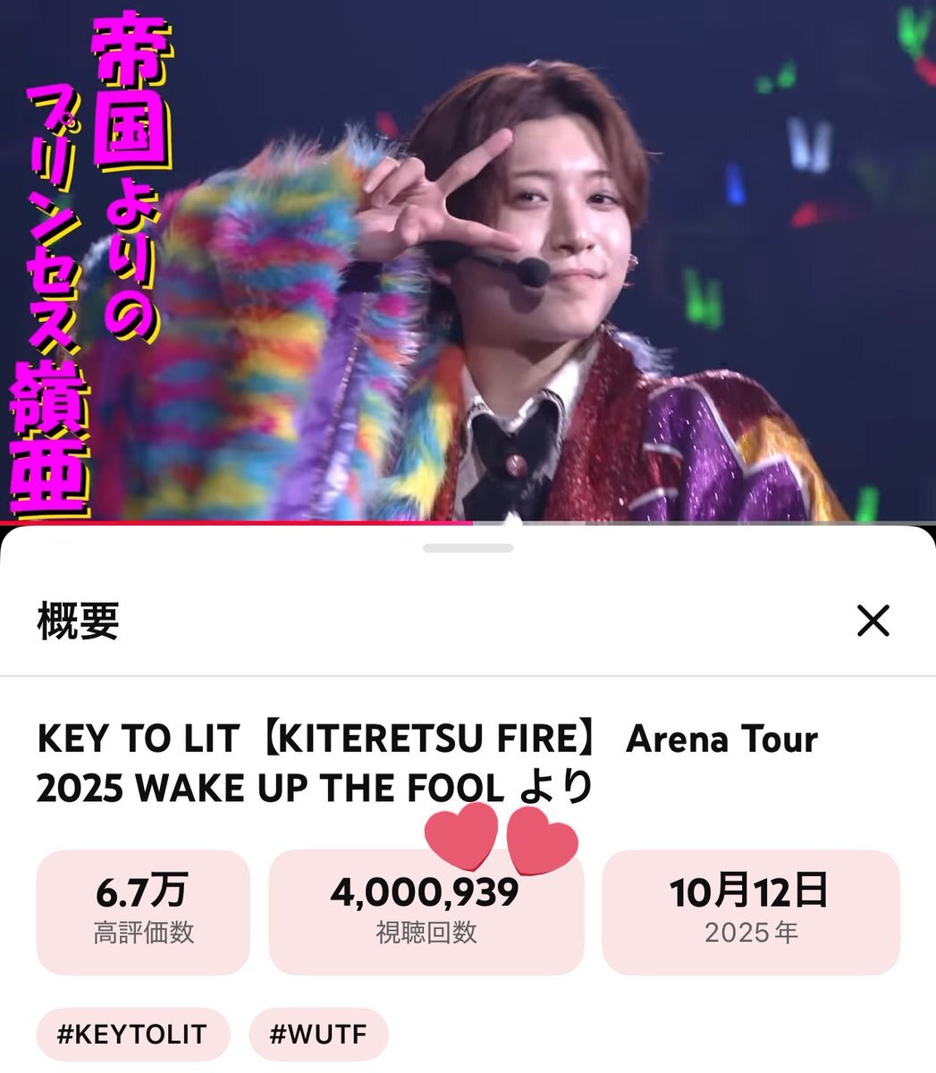 ㊗️4️⃣0️⃣0️⃣満開"🪭"🪭"🪭⸜(*ˊᗜˋ*)⸝ KEY TO LIT【KITERETSU FIRE】 Arena Tour 2025 WAKE UP THE FOOL より youtu.be/H8BEhVmxc4U?si… @YouTubeより #KEYTOLIT #KITERETSUFIRE #きてれちゅーぶ
