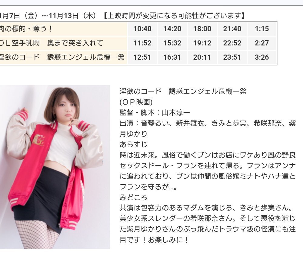 返信先:@pechan_1582予告編始まる、10/31(金)公開 #山本淳一 監督 #音琴るい #新井舞衣 #きみと歩実 #希咲那奈 #紫月ゆかり #上野オークラ劇場 pic.x.com/54b4kiqN2c