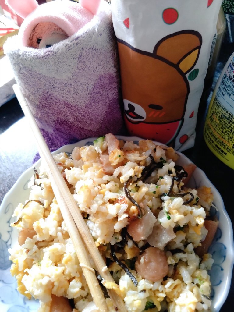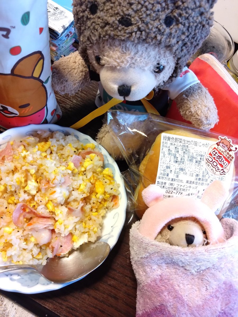 ちゃんまー🧸「ちゃんまー🧸、‘’ちゃーのちゃーはん‘’をつくってみたちゃ!😌しおこんぶ·にんにく🧄(チューブ)·バター🧈であじつけしたら‥‥げきうま😋ちゃ‼️🤩🙌」 #ぬい撮り #ゆにくまーじゃ #きょうのごはん (昼) pic.x.com/DAqc3ub0Xx