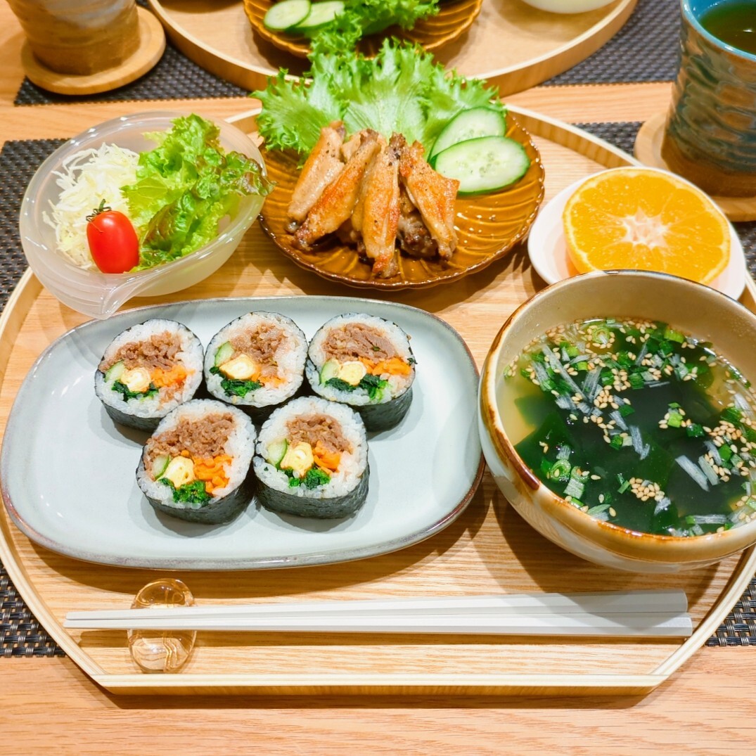 ⸜ 本日の献立🍚 ⸝ ꕤ︎︎プルコギキンパ ꕤ︎︎手羽中の塩胡椒焼き ꕤ︎︎サラダ ꕤ︎︎わかめスープ ꕤ︎︎みかん お疲れ様でした🌷.* #おうちごはん #きょうのごはん #今日の献立 #献立記録 #ふたりごはん #おぼんごはん #夜ごはん #料理好きな人と繋がりたい pic.x.com/9vaTGi9xXL