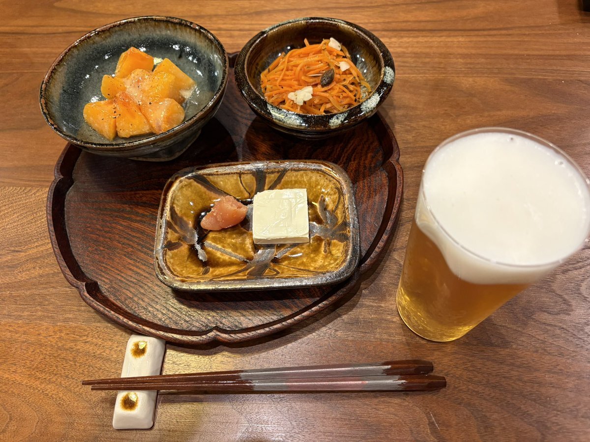 本日の晩酌 キャロットラペ 柿の塩麹和え 明太子クリームチーズ 遅めのお昼ご飯にたっぷり食べて飲んだので、お風呂入ってから野菜中心の晩酌。柿は去年友達が持ち寄りパーティに持ってきてくれた、簡単でうまいやつ。 #きょうのごはん pic.x.com/VOmbSJHR7D
