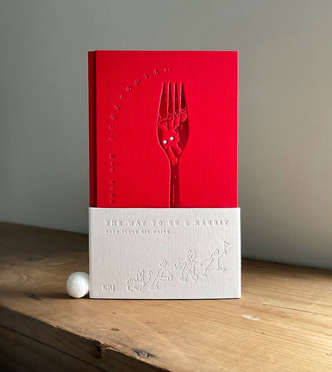 【書影公開】 6月刊行の新刊『うさぎまでのおさらい』(ビーナイス)書影公開です! --------------------------------------------------- 本作は2016年に刊行になった『くままでのおさらい』に登場する「うさぎ」が主役の物語。 表紙はうさぎの真っ赤な目をイメージした赤のクロス装。
