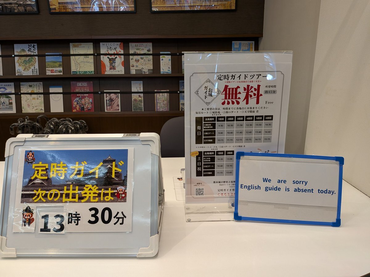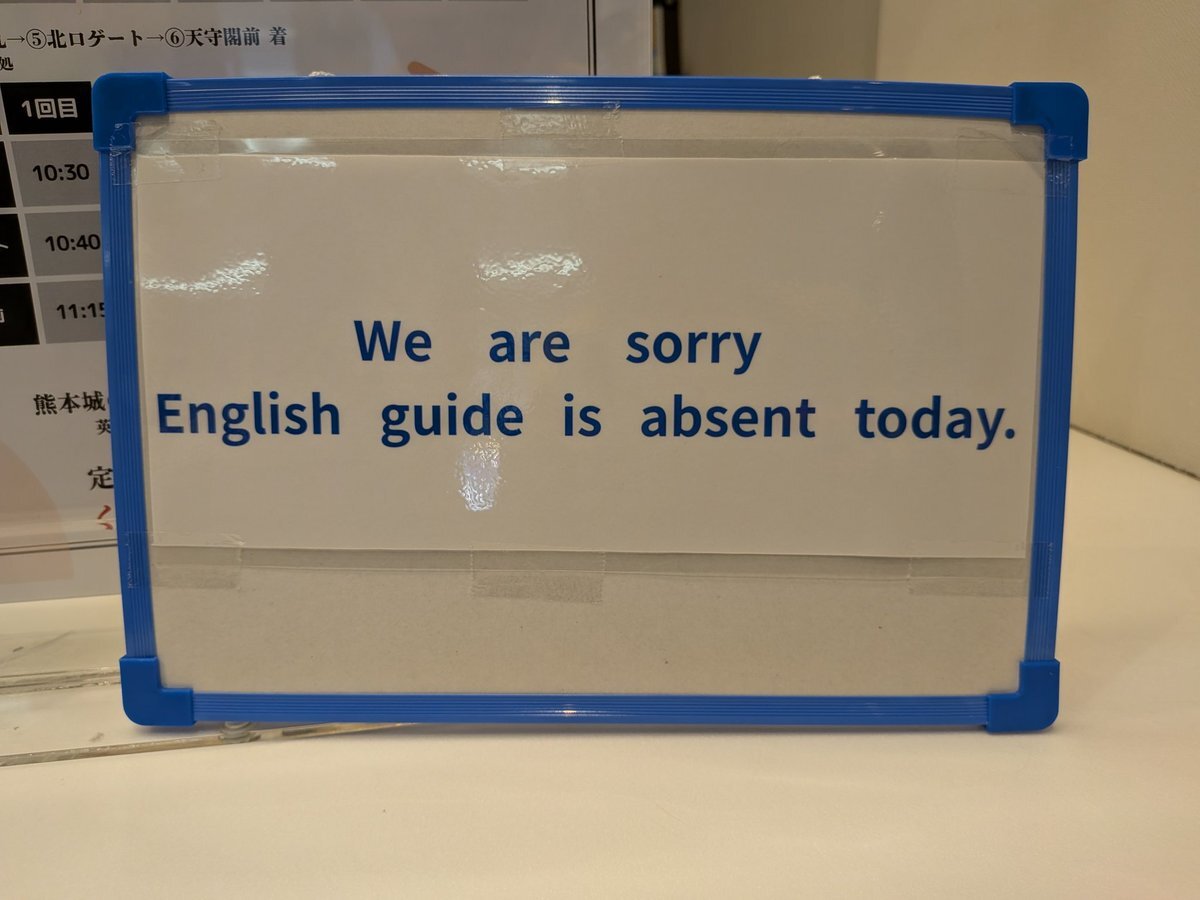 🔴定時ガイド🔴 英語でご案内できる 英語でご案内できない お客様にはわからないので、案内板を作りました。これで海外のお客様に伝わるといいな😊 #熊本城 #城彩苑観光案内所  #定時ガイド #くまもとよかとこ案内人の会 pic.x.com/vzQ1GcEu7v x.com/YokatokoGuide/…