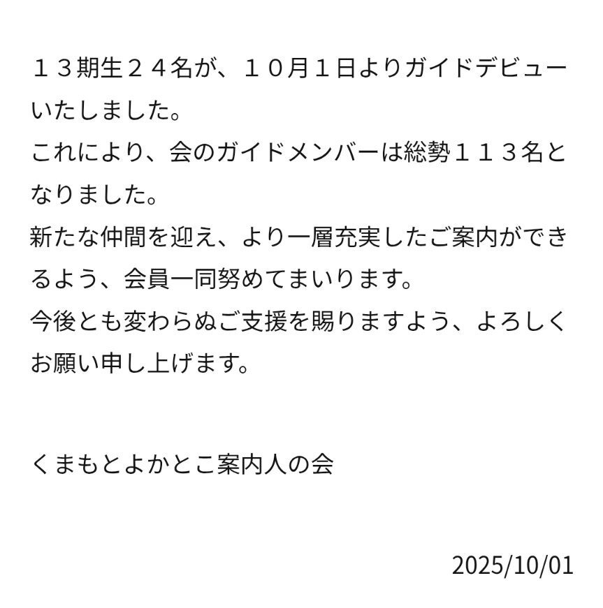 本日10月1日より、13期生がガイドデビューしました🎉🎉🎉 #くまもとよかとこ案内人の会 pic.x.com/Wy4xNbeB0A