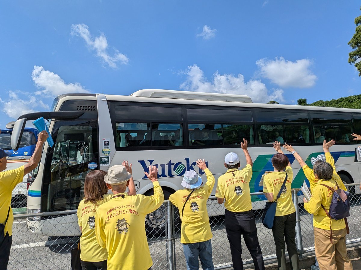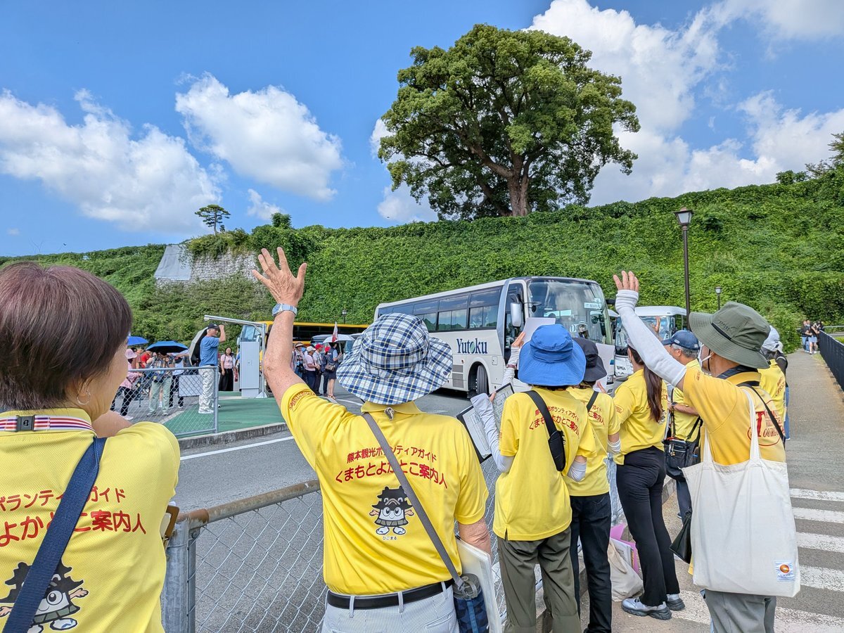 修学旅行の生徒さん達をお見送り😊 このお見送り、よかとこガイド達は大好きです🥰 一期一会の出会い、熊本城をご案内して、最後はそれぞれが想いを込めて手を振ります👋 自分が担当したクラスのバスが来るとテンションがより一層上がります。 #熊本城 #修学旅行 #くまもとよかとこ案内人の会 pic.x.com/QFZ5iKG732