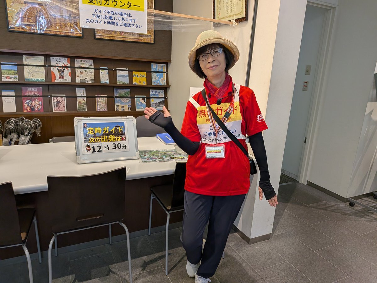 三連休最終日(10/13)、よかとこはミニガイドやります‼️ 今日も暑くなりますので、休憩がてらご覧ください。エアコンが効いて涼しいてすよ😊 時間: 12:00~/13:00~/14:00(各回約10分) 場所: 城彩苑観光案内所 #くまもとよかとこ案内人の会 #ミニガイド #城彩苑観光案内所 #熊本城 pic.x.com/JGpAQPf0H5