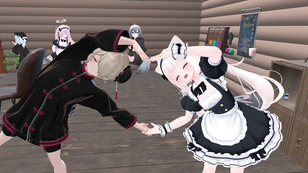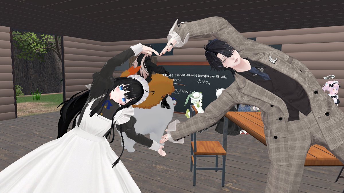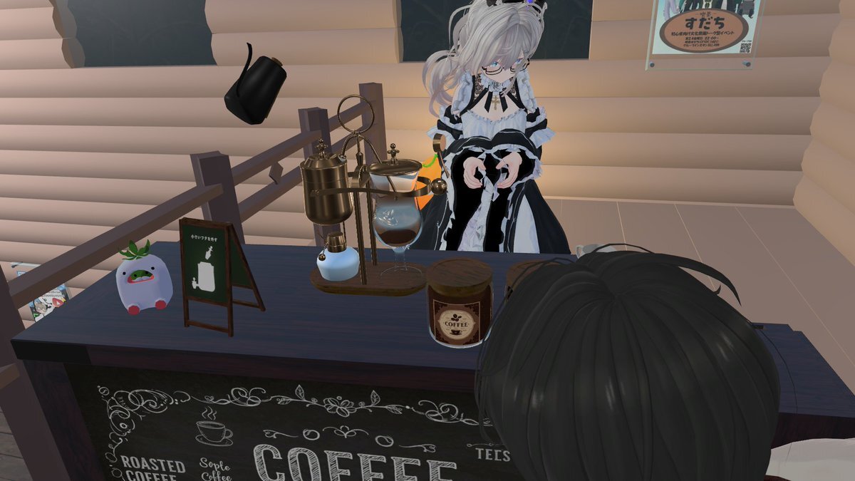 第27回目イベントおしまい! 今回は久しぶりの通常営業! 新規さんも常連さんもいっぱい来てくれて嬉しい!! あと似顔絵書いて貰ったよ!! 次回、れべる28の営業は11/16だよ! よかったら是非また遊びに来てね! #VRCイベント #くらぶの小さな喫茶店 #VRChat pic.x.com/MqnjEasTUT