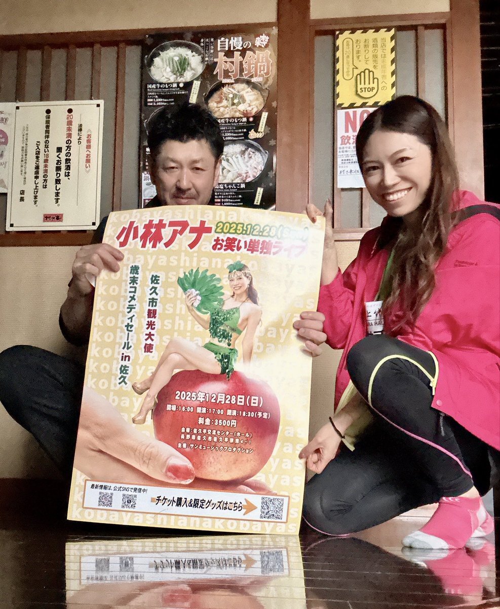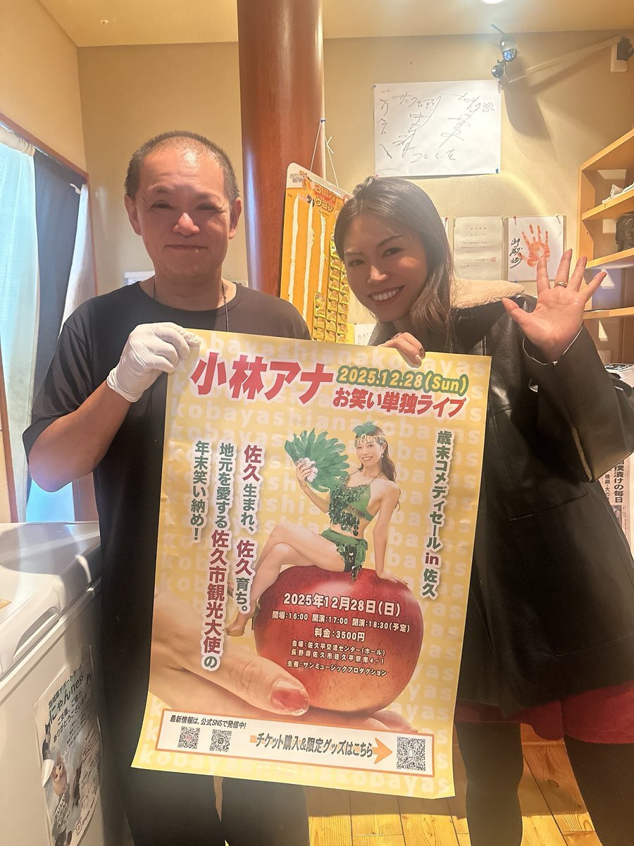 小林アナお笑い単独ライブ 歳末コメディセールin佐久 各所ポスター貼らせていただいております あたたかい皆様✨ #くろさわ病院 #寝ずの甚八 #かいせん問屋ごう #村さ来 pic.x.com/5xY26ca1Ua
