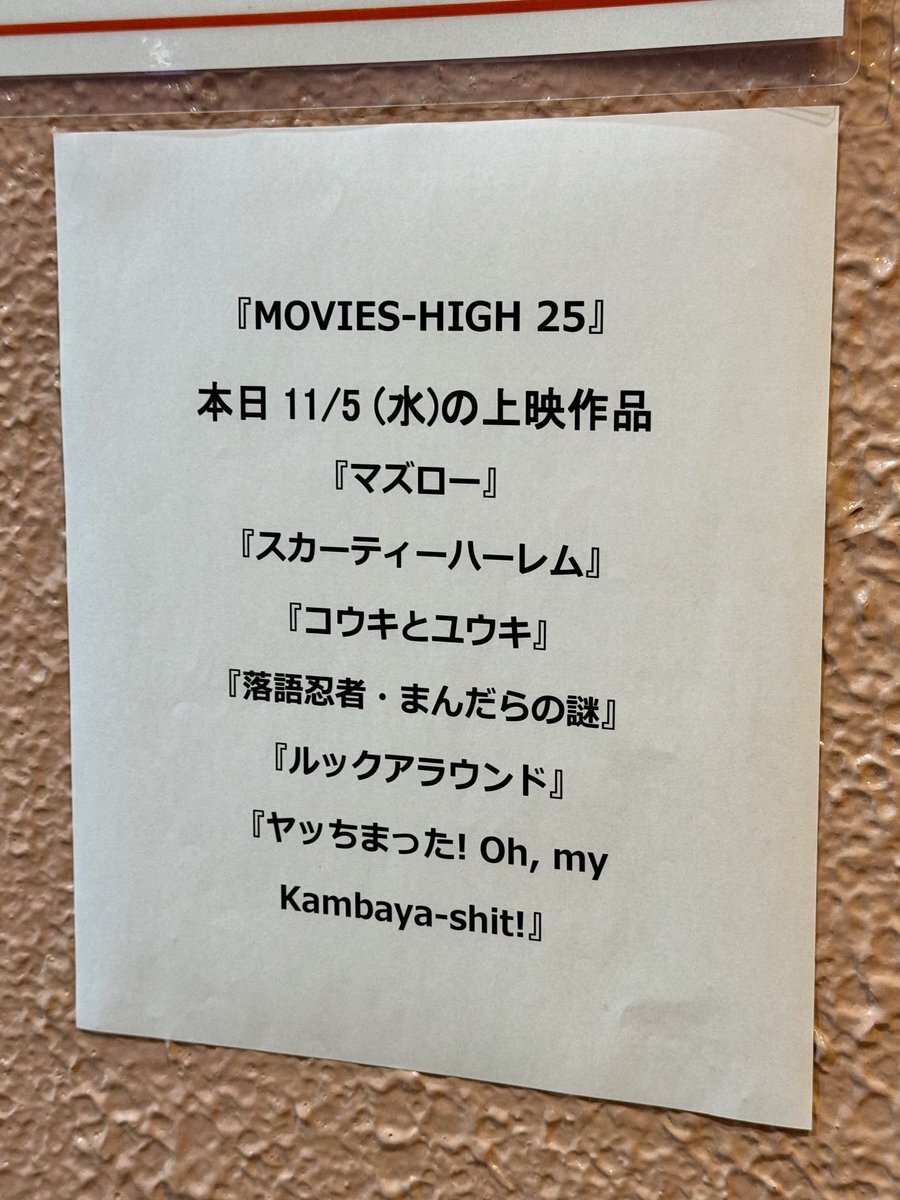 本日11/5(水) 20:30〜 『MOVIES-HIGH 25』 #ムビハイ25 クリエイターコースプログラムBASIC②   オンライン予約はこちら👇 schedule.eigaland.com/schedule?webKe… ※上映30分前まで購入可能 ご来場お待ちしております✨ #シネマロサ #インディーズフィルムショウ