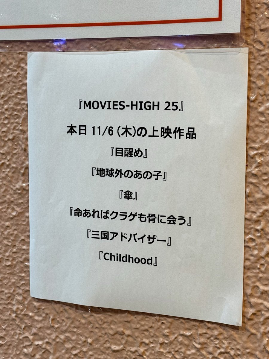 本日11/6(木) 20:30〜 『MOVIES-HIGH 25』 #ムビハイ25 クリエイターコースプログラムBASIC③   オンライン予約はこちら👇 schedule.eigaland.com/schedule?webKe… ※上映30分前まで購入可能 ご来場お待ちしております✨ #シネマロサ #インディーズフィルムショウ