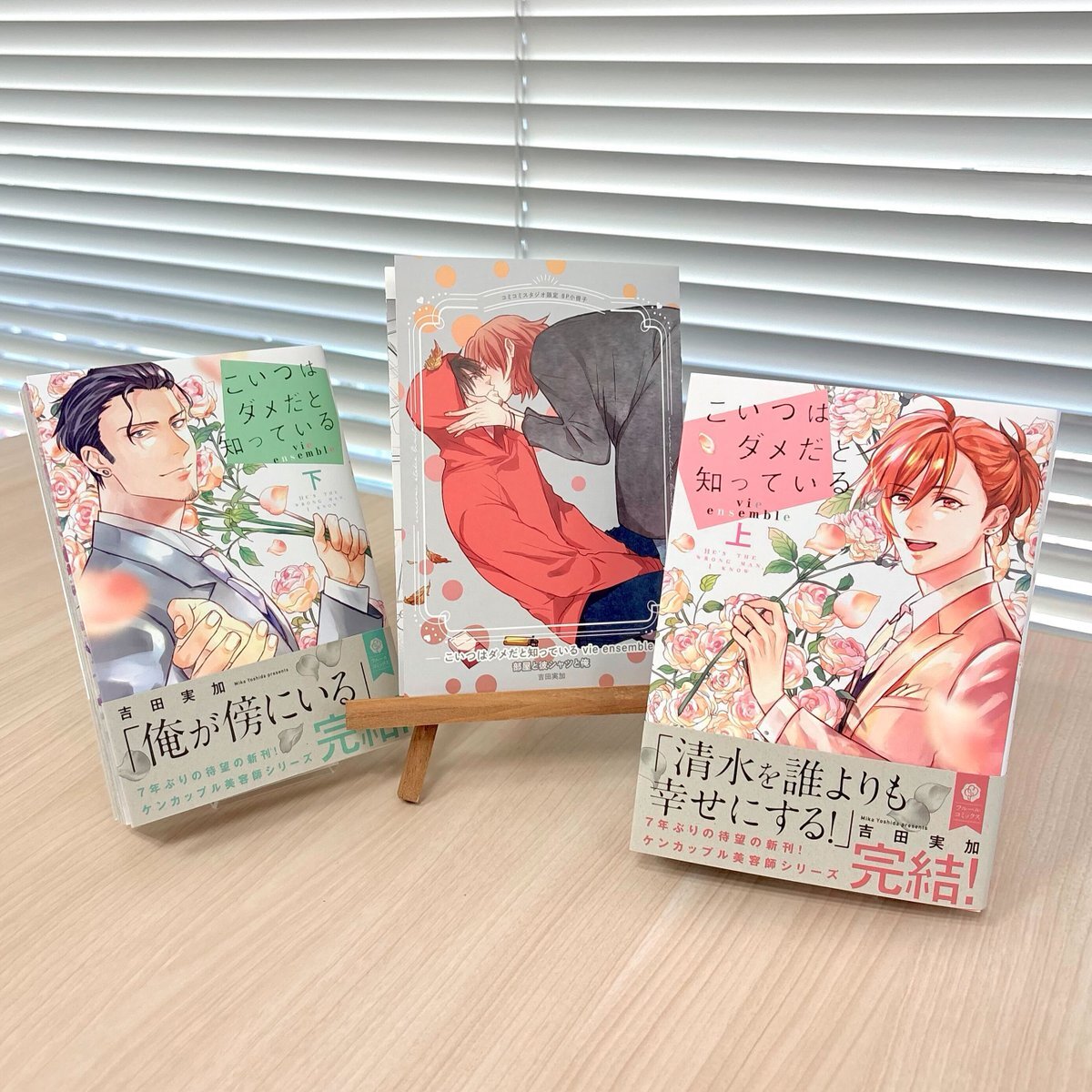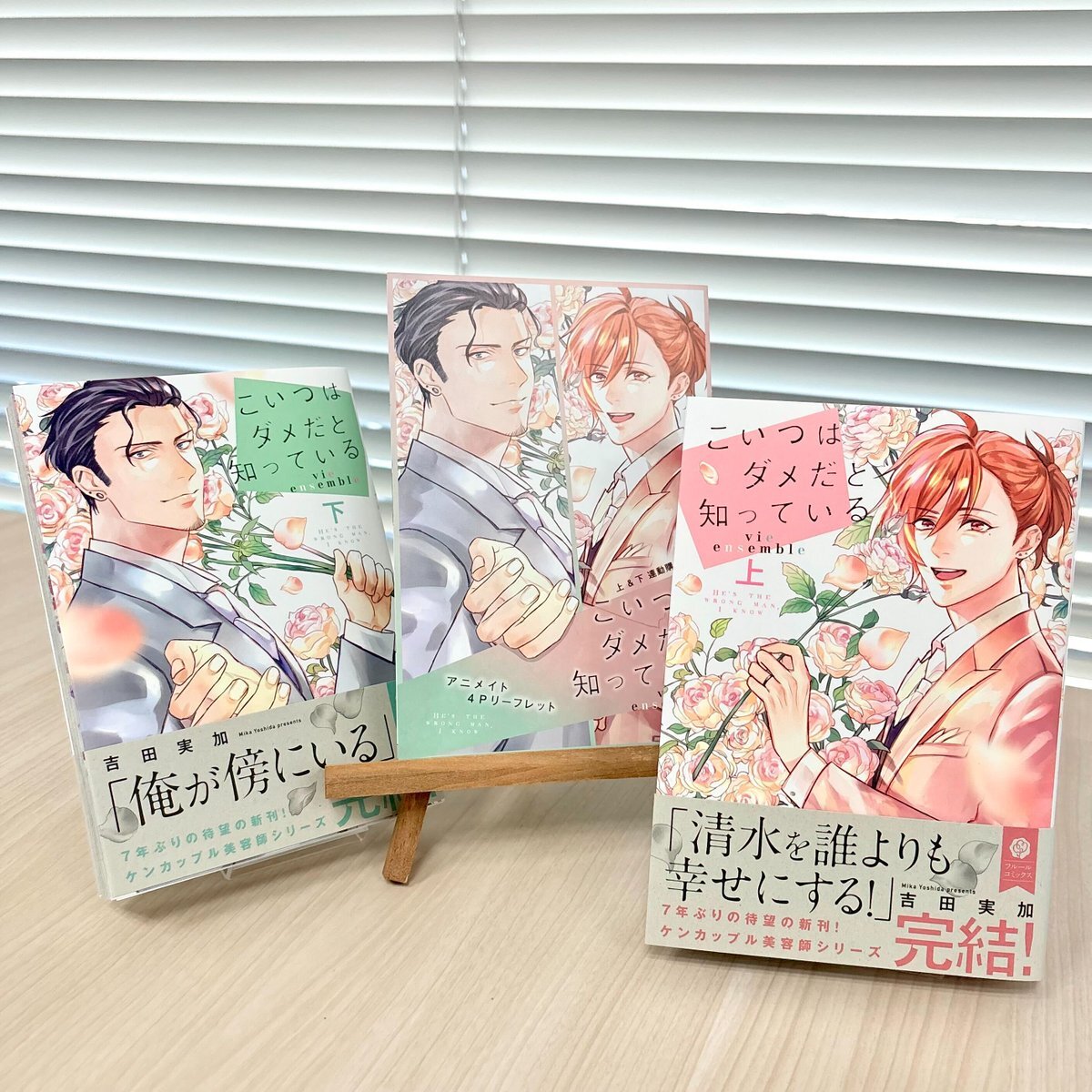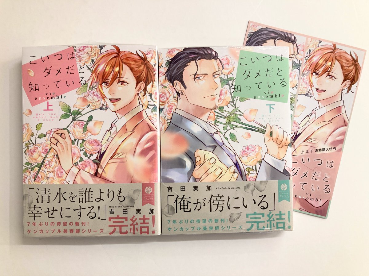 🌟好評発売中🌟 『#こいつはダメだと知っている vie ensemble 上・下』 著:吉田実加(@mikanbonbon) 大人気☆ケンカップル美容師シリーズ、ついに完結!!💗 特典見本届きました👀 アニメイト様限定4Pリーフレット 👇こちらから購入できます💌 animate-onlineshop.jp/pn/%E3%80%90%E… animate-onlineshop.jp/pn/%E3%80%90%E… pic.x.com/UmNkNhDmOK