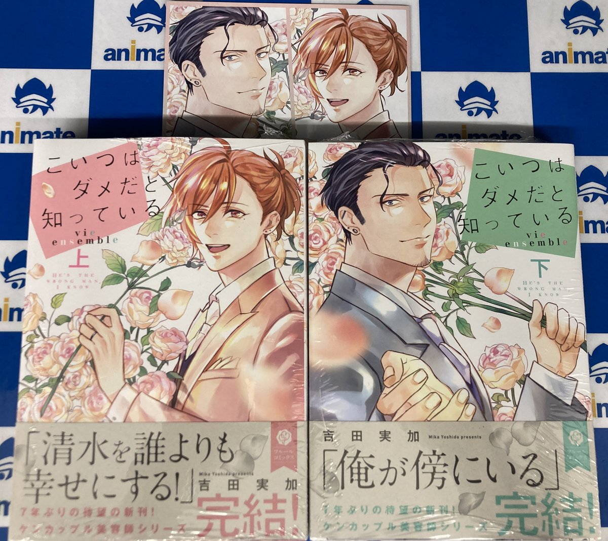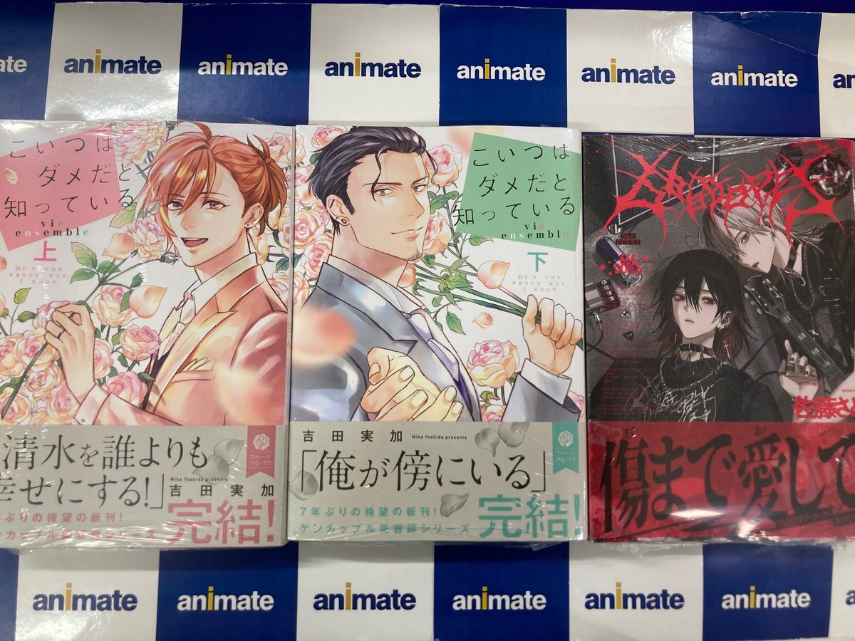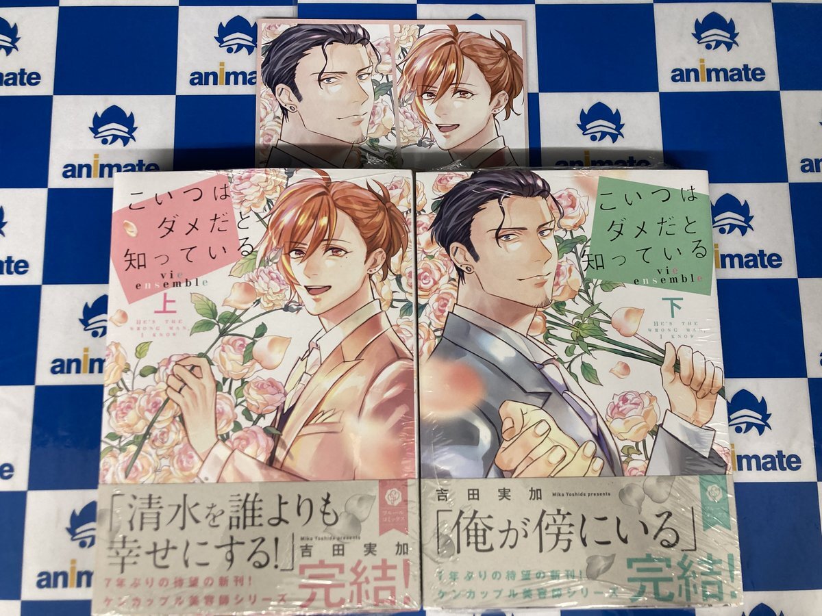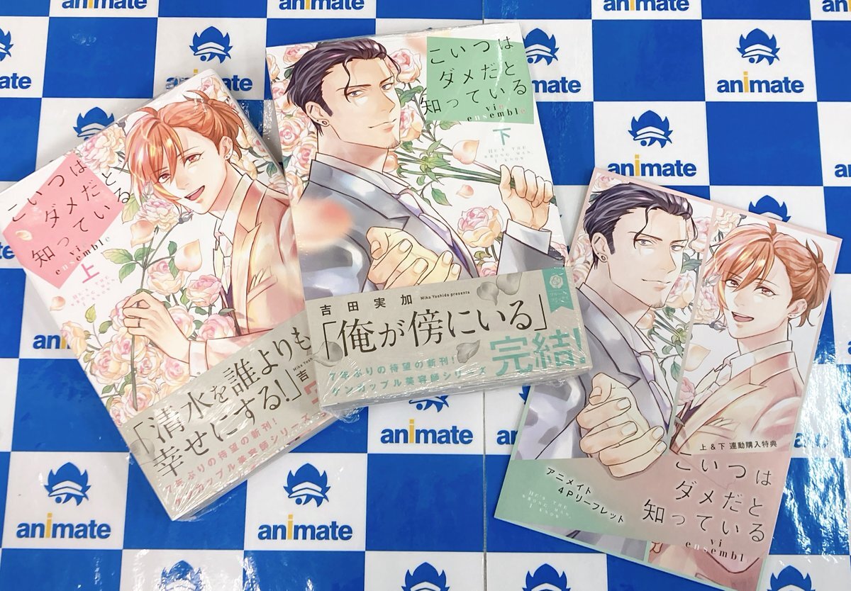 【書籍入荷情報】 #吉田実加(@mikanbonbon)先生 「#こいつはダメだと知っている vie ensemble(上)(下)」 が入荷したどすえ~❤️❤️ アニメイト連動特典で《描き下ろしB6サイズ4Pリーフレット》をプレゼント🎁 ぜひお買い求め下さい✨✨✨ #アニ推しBL pic.x.com/xIyvBaxvjD