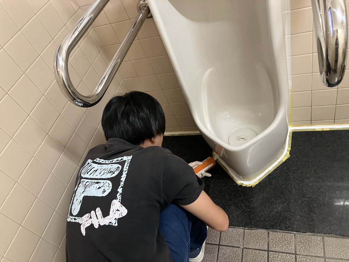 よつ葉の家トイレ美化計画委員会🍀 よつ葉まつり前ということで委員会でトイレ掃除🚽✨ ついにコーキングガンにも手を出して環境改善に取り組んでいます😆 トイレ掃除は大変だけど、会話も弾んで楽しい時間になってます🎈 #ここで暮らしたいと思う施設作り #障害者支援施設 pic.x.com/jIIwLtMjrY