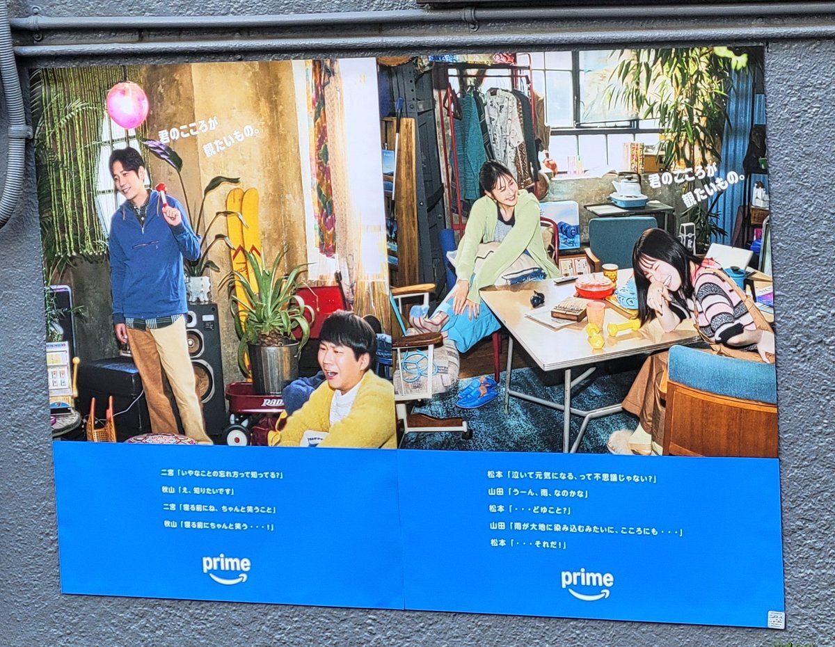 primevideoのポスター⸜(*ˊᗜˋ*)⸝ 時間が押し迫ってきたので 渋谷だけ!見つけると嬉しいね #ここにもいたよ二宮さん #ここにもいたよ松本さん #ここにもいたよ山田さん #ここにもいたよ秋山さん pic.x.com/63lgcRACbq