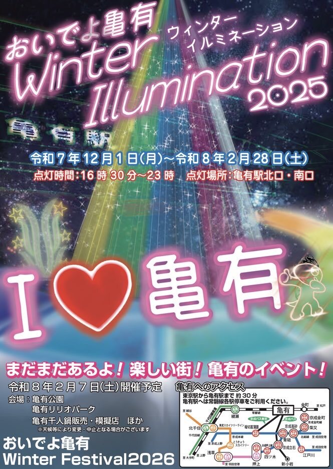 #葛飾区 #まいぷれ葛飾 【イベント情報】 #おいでよ亀有 #ウィンターイルミネーション2025✨ 令和7年12月1日(月)〜令和8年2月28日(土) 16時30分〜23時 #亀有駅 北口・南口⭐️ #こち亀記念館 の開館を記念し #こち亀銅像 にも装飾が施される予定👀✨ katsushika.mypl.net/shop/000003560… pic.x.com/L6p3TsYrvx