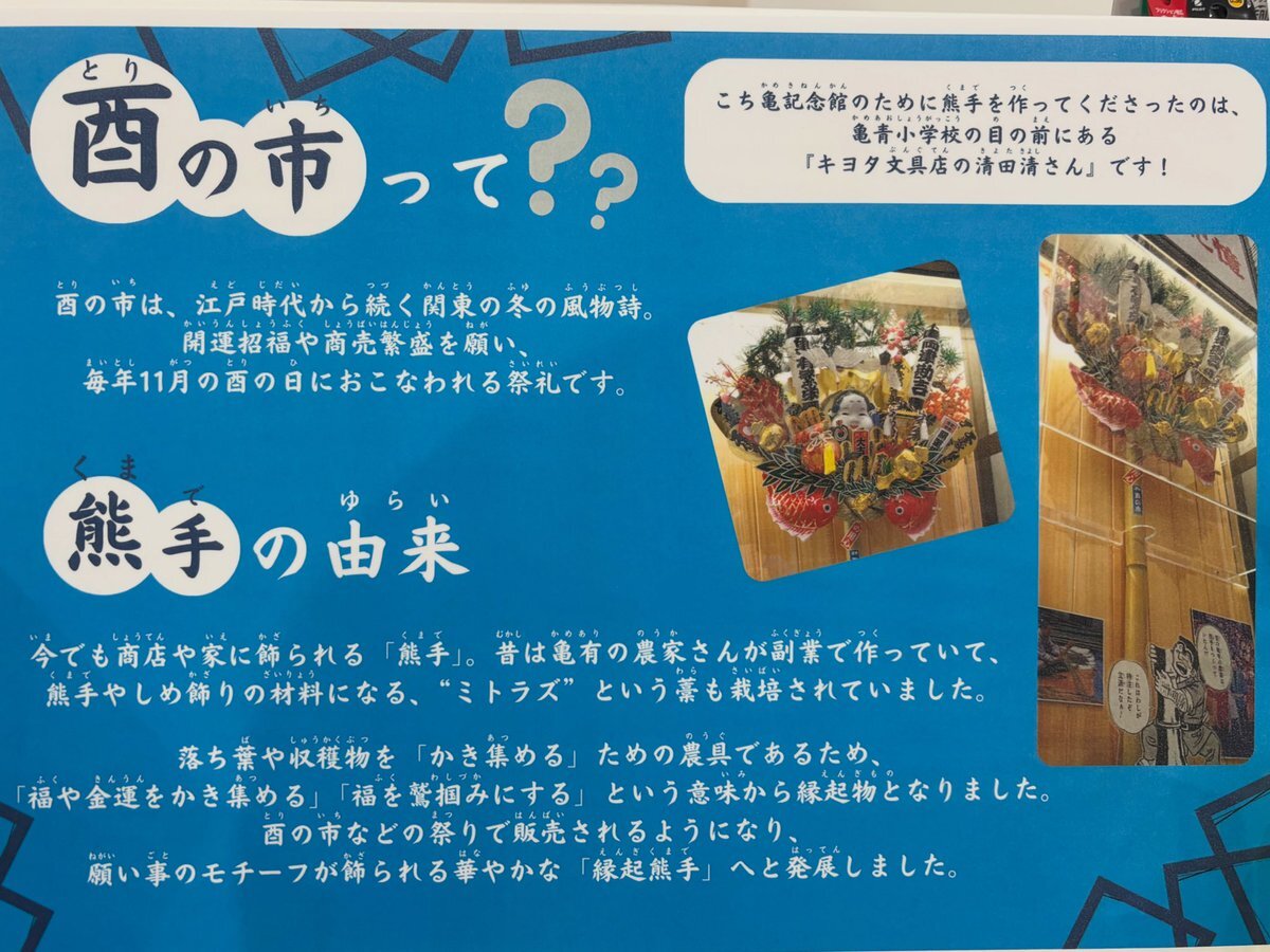 昨日は浅草の鷲神社で 一の酉でしたね 店主の父が制作した熊手は 「こち亀記念館」に 飾られています。 本日も18時30分まで 営業致します。 #浅草鷲神社 #おとりさま #酉の市 #〆縄清田 #亀有 #こち亀記念館 pic.x.com/sqIO8u6TpC