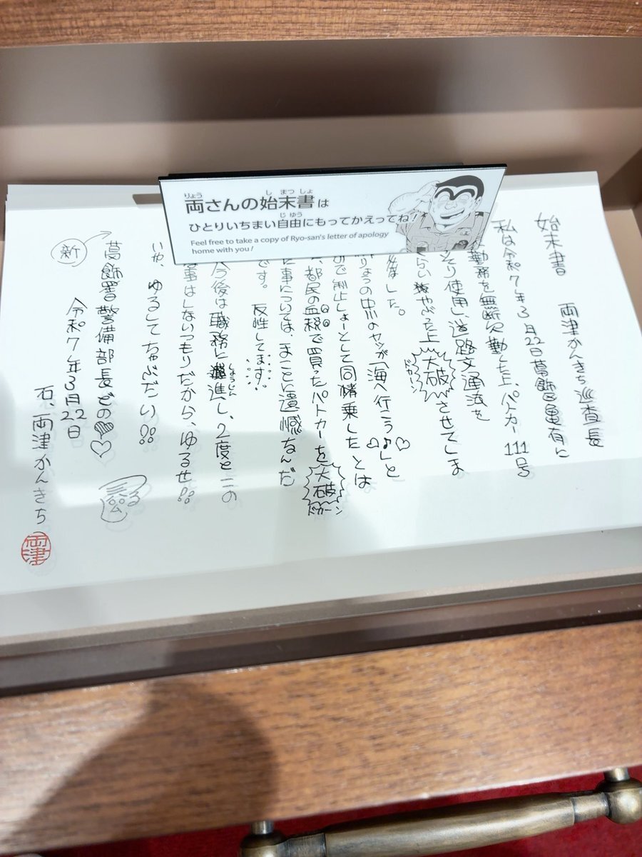 葛飾区まで足を伸ばし こち亀記念館へ こち亀201冊や原画や色紙、これまでの歴史や体験コーナーなどいろいろな展示があり、こち亀で育ってきたので懐かしさでいっぱいでした こち亀の暖かさを感じ、ハチャメチャな部分も感じ、心がホカホカになりました! #こち亀記念館 #こち亀 pic.x.com/rHRZW4Pv0P
