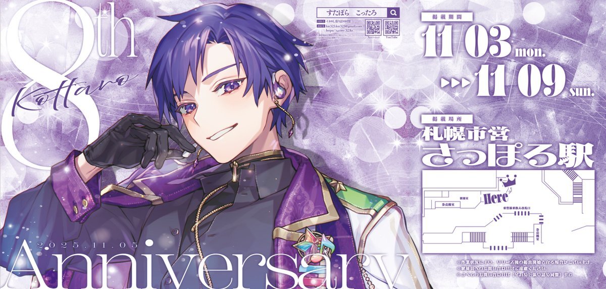 \\🌟応援広告掲載のお知らせ🌟// すたぽら こったろさんの8周年を記念して3都市にて応援広告を掲載させて頂いております✨️ 🗓第1弾 10月31日〜11月6日 (7日間) 北海道(札幌) / 東京 ⚠️詳細は画像またはツリーをご確認ください🙇♀️ #すたぽら #こったろ #こたくんへ