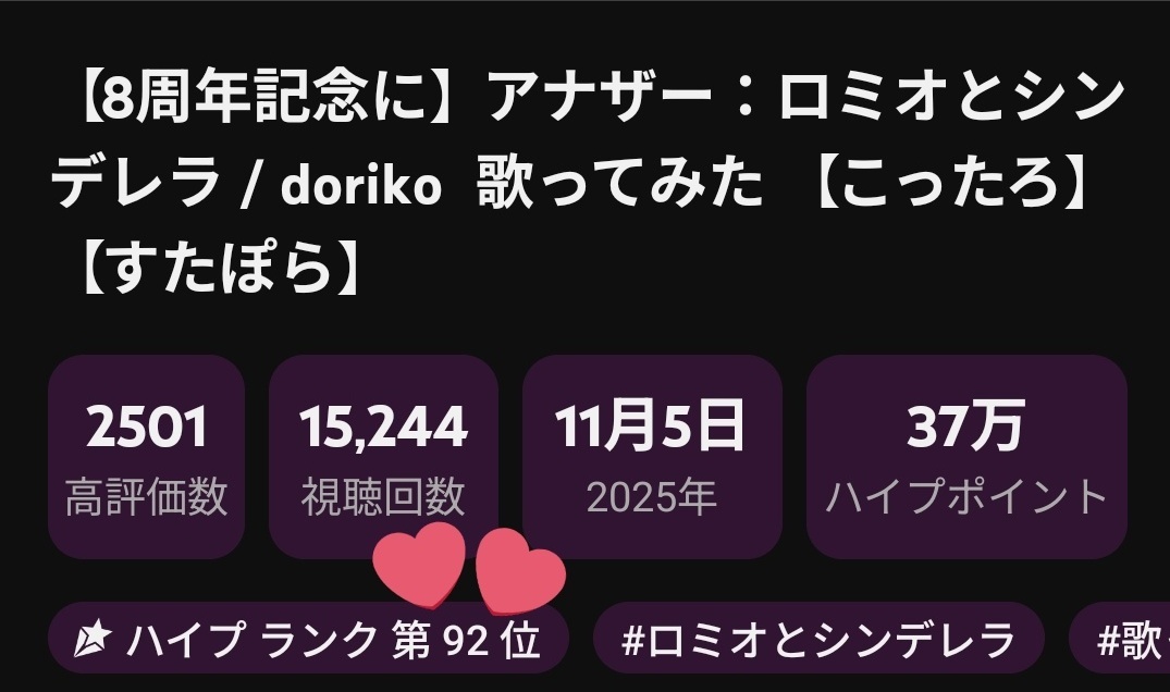 おはようございます🍀 昨夜の『睡眠導入歌枠』🎶 ピアノver.だからこそこたくんの歌うまが際立ってめちゃくちゃ沁みる幸せな時間だったなぁ♡ まさか『ロミシン ピアノver.』聴けるとは😱 そして現在ハイプランク92位です👏少しずつ上位へ‼️ #こたくんへ #こったろ8周年まだここにいるよ pic.x.com/9o4GJCx2fG x.com/ktr_utau/statu…